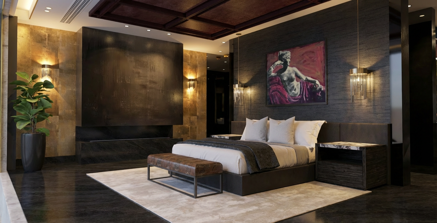 sol et murs en enduit b ton beige clair mat robinetterie chrome miroir r tro clair lumi re avec spots et sky d me conserver l armoire du fond meuble en placage ch ne clair