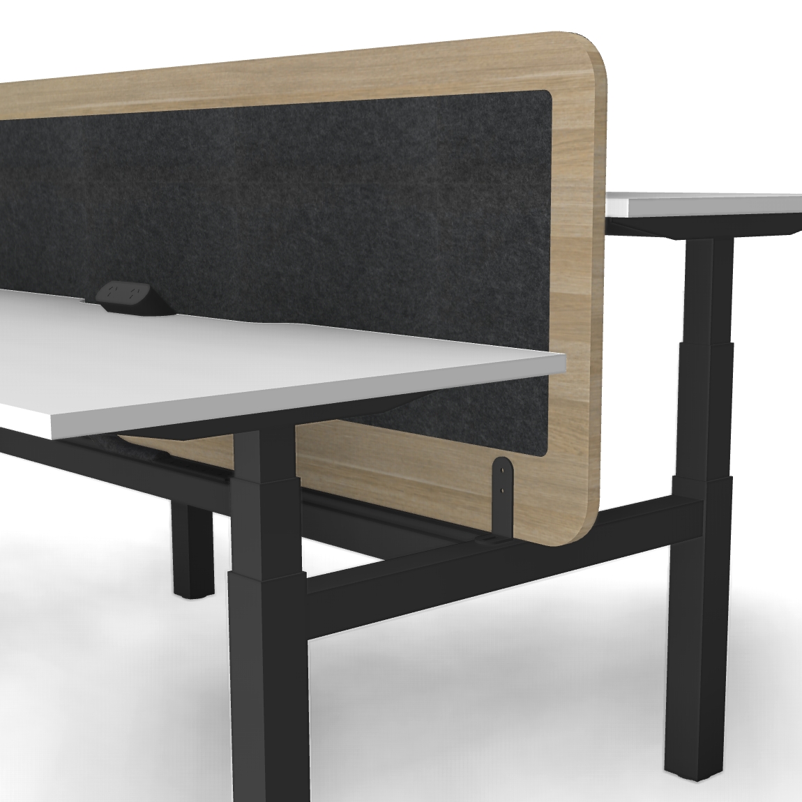 realistic textures and finishes natural lighting black desk frame white table tops oak partition with acoustic panel insert