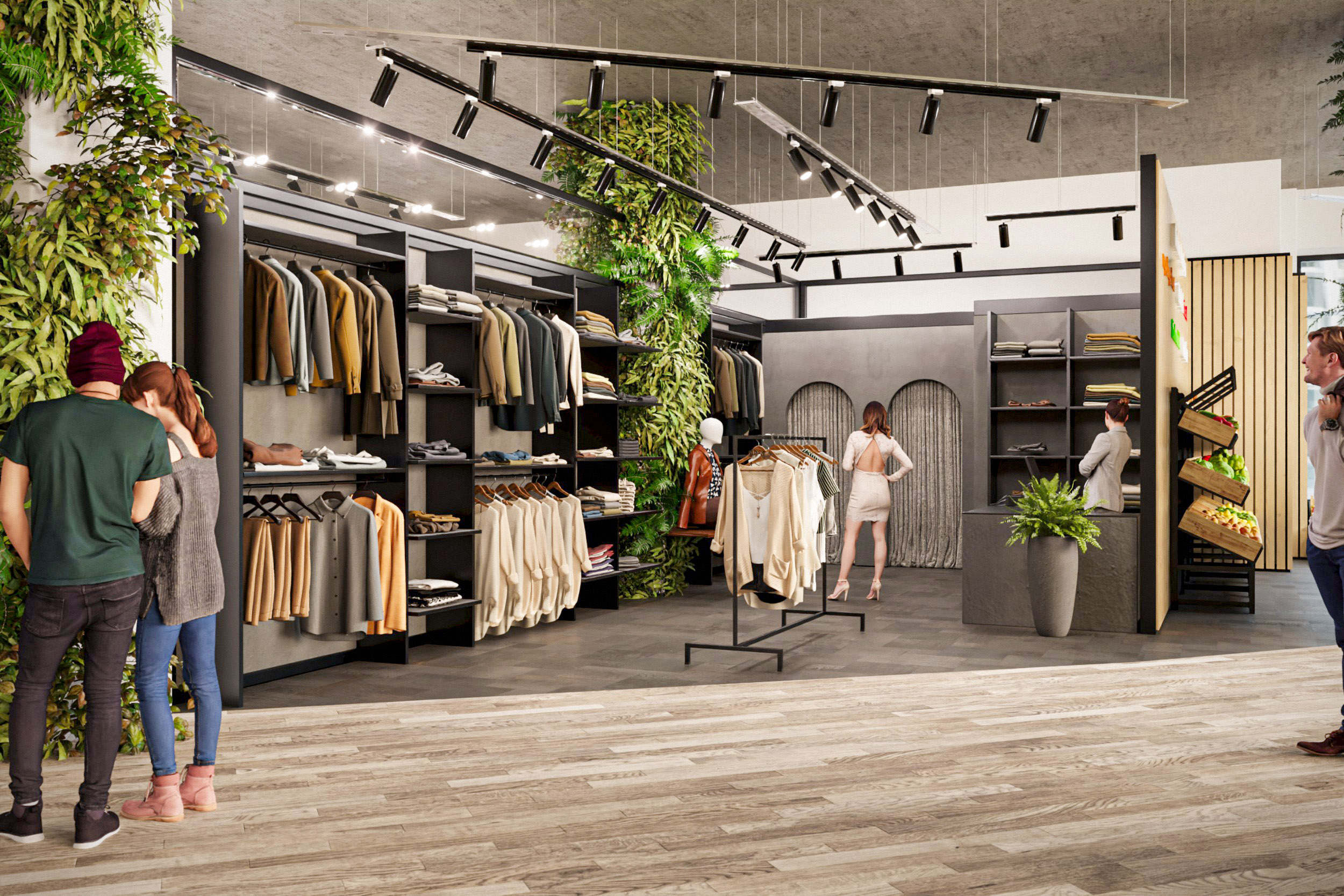 editing script for archsynth boutique interior enhancement do not change the structural layout composition or major architectural elements of the original image keep the perspective walls and spatial arrangement exactly as they are make the image look more realistic high quality and refined consistent with a boutique interior materials surfaces refine all textures so they read as natural high end materials replace any flat or artificial surfaces with realistic finishes appropriate for a boutique e g polished wood flooring textured plaster or stone walls matte or satin surfaces on shelving and display units ensure surfaces have physically accurate detail visible grain in wood subtle reflections on metal natural variation in fabrics lighting atmosphere improve lighting to feel warm balanced and natural as in a sophisticated retail environment add soft shadows and gentle highlights to convey high end interior lighting avoid harsh or flat lighting create depth and dimensionality with realistic light behavior detail enhancements sharpen and clarify small details so they look believable and three dimensional at high resolution enhance reflections and material responses for glass mirrors metal and textiles so they behave realistically under light boutique specific identity strengthen visual cues that this is a boutique interior refine display units so they look like real retail fixtures e g elegant shelving garment racks product tables improve textures on clothing accessories or merchandise so they look natural and tangible add subtle depth and material quality to any fabrics leathers or display props all enhancements should be photorealistic cohesive and true to life without altering the underlying layout of the original image architecture
