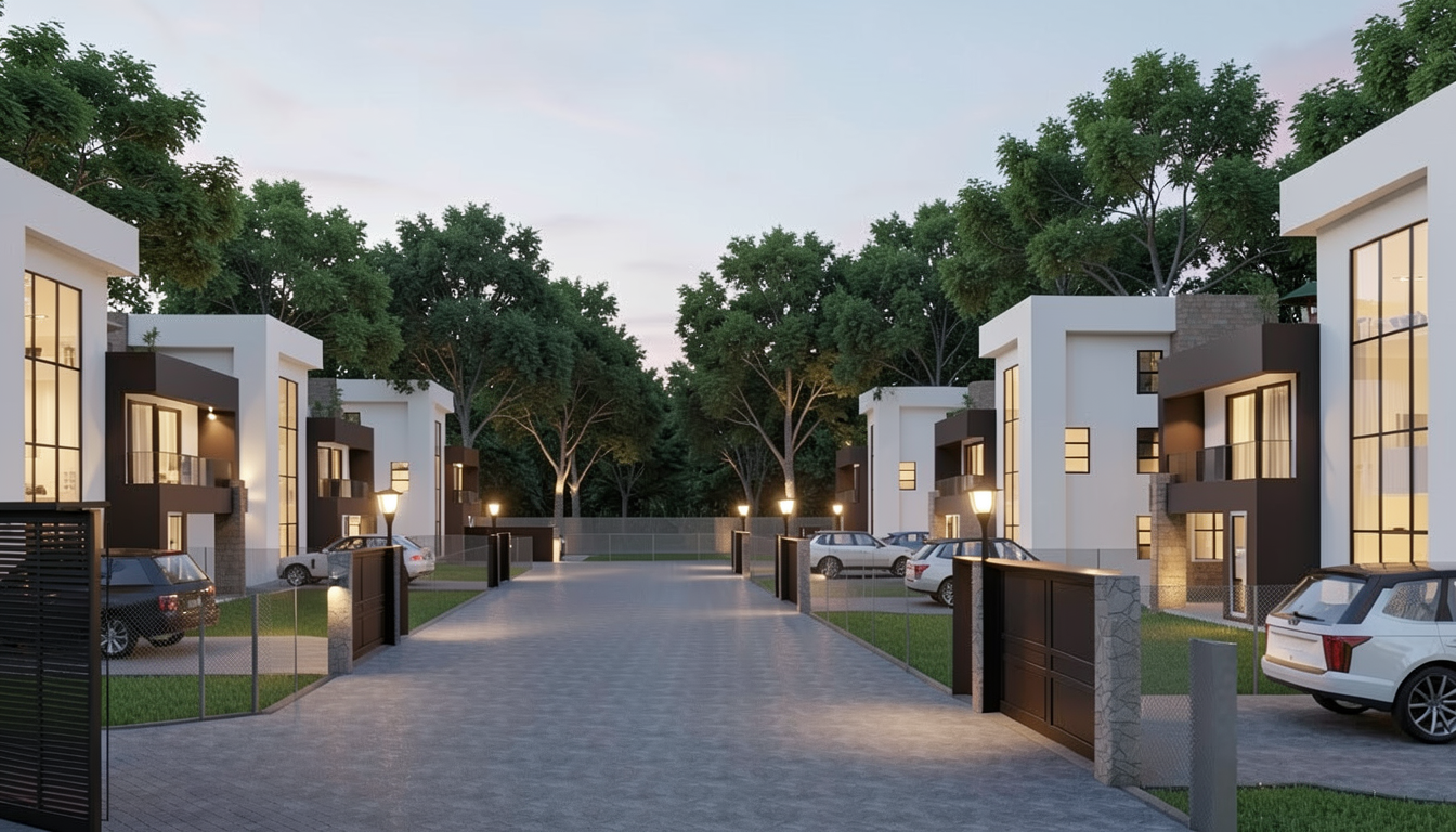 partly cloudy day in a suburban neighborhood