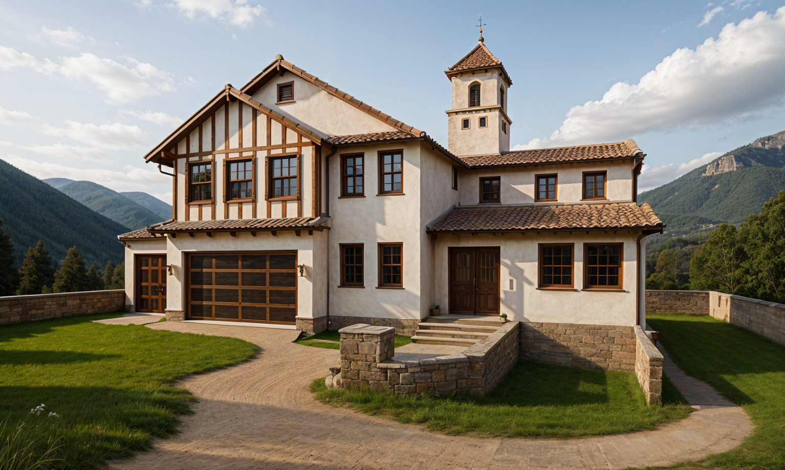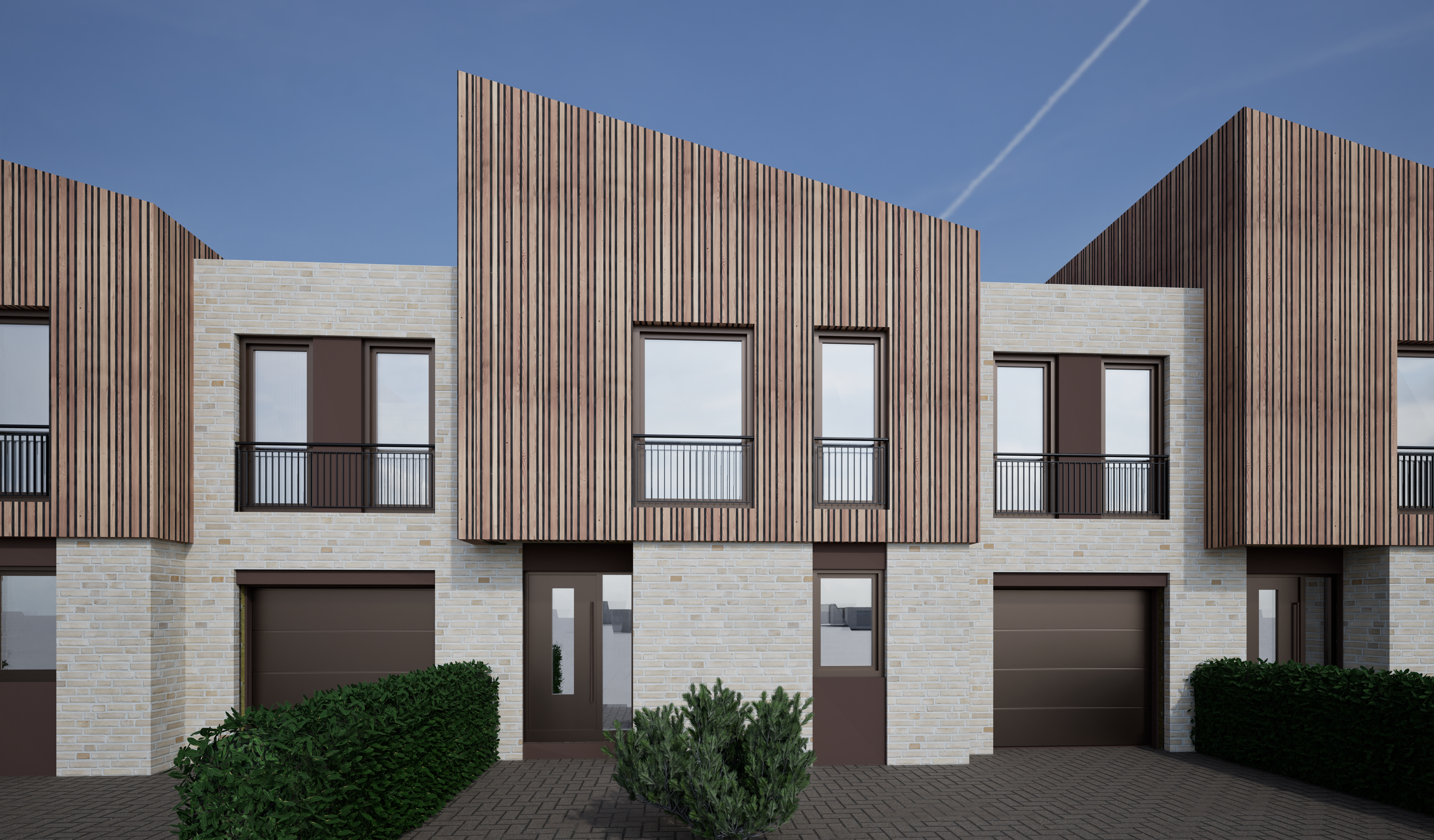 exterior shot take over the exact lines and shapes from the original image use the materials from the mood board consider the differences between windows doors and garage doors in the original image