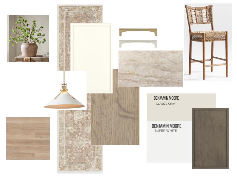 interior shot please transform this into a luxury kitchen with shaker cabinetry with wall cabinets going until the ceiling with taj mahal countertops and mid toned wood flooring