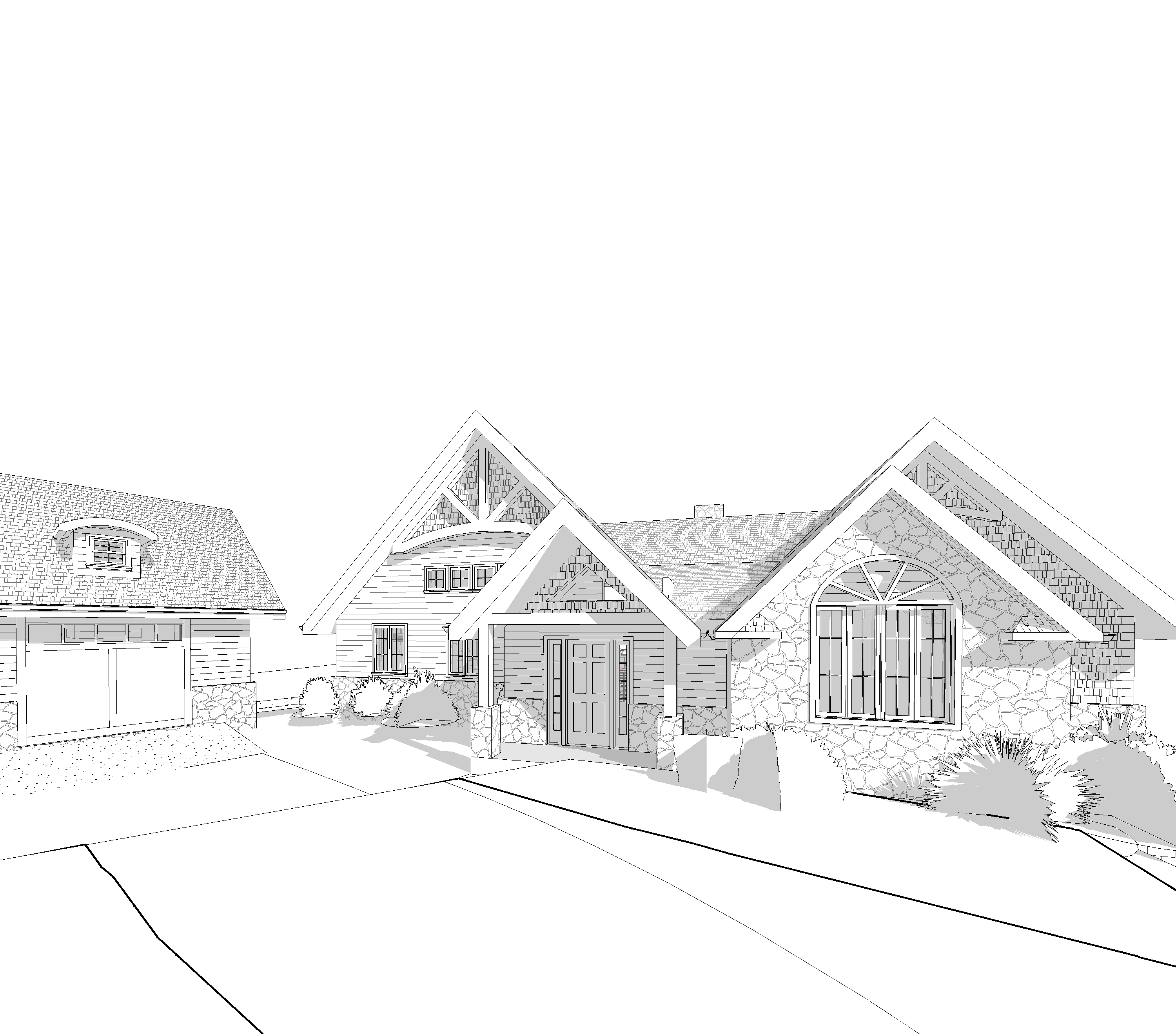 art nouveau exterior shot render a serene mountainside setting featuring a cottage style house the house is textured with rounded field stones cedar shakes white trim large windows reflecting hints of mountains surrounding the house the lush landscape is filled with evergreen trees and trees adorned in rich emerald foliage the scene includes a nice contemporary car the driveway is beige concrete the sky above is mostly cloudy casting soft shadows and creating a tranquil peaceful ambiance there s a hint of a blue ridge appalachian mountain view beyond architecture