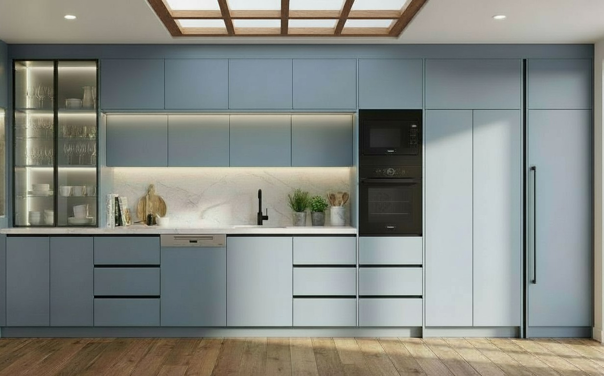 replace units below top cupboards with display spice rack with led light