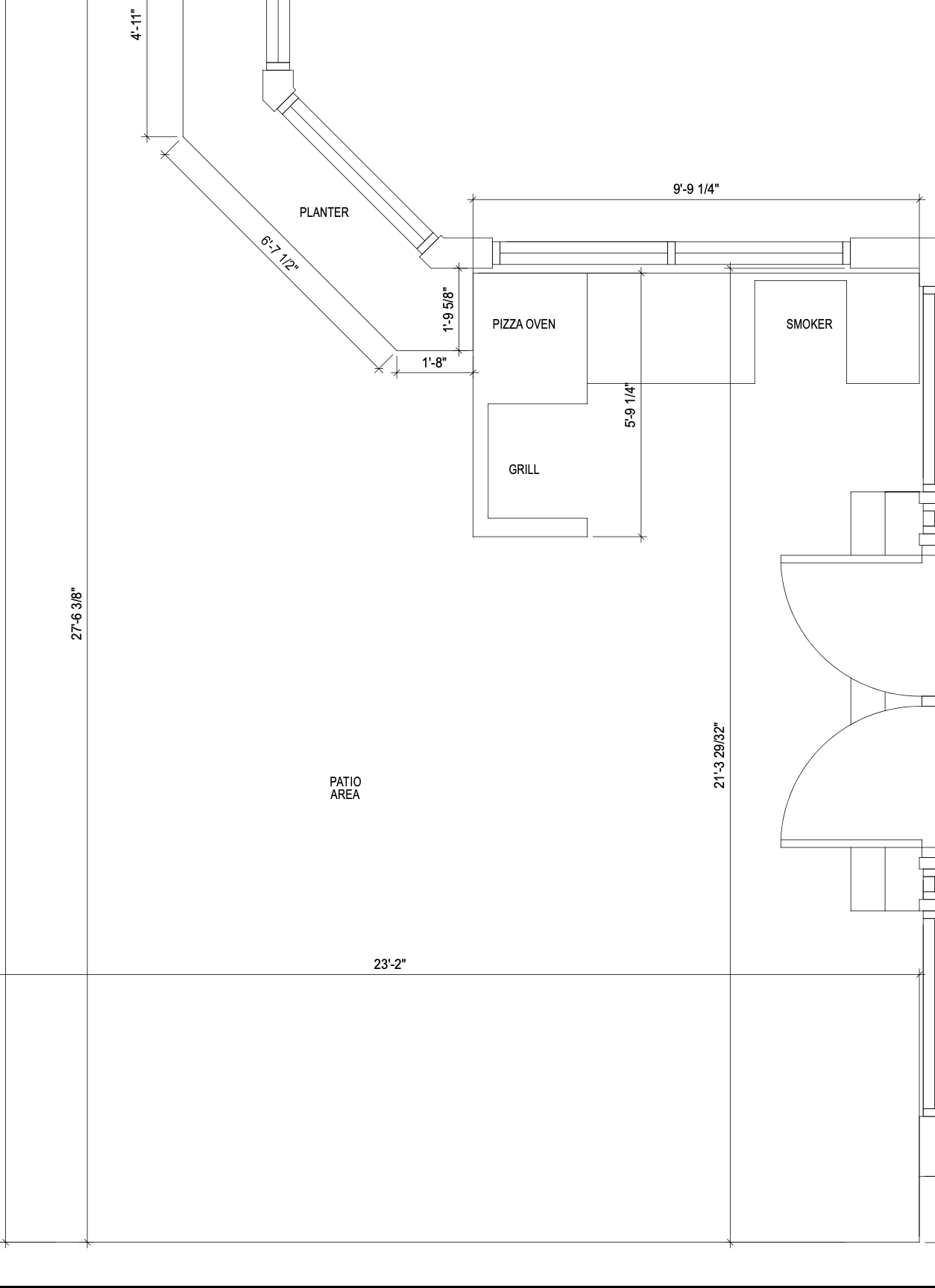 recreate this floor plan in to an actual back yard area i need a small sitting area outdoor kitchen with grill egg smoker refrigerator and counter space possibly a counter with stools i also need dining table for at least 6