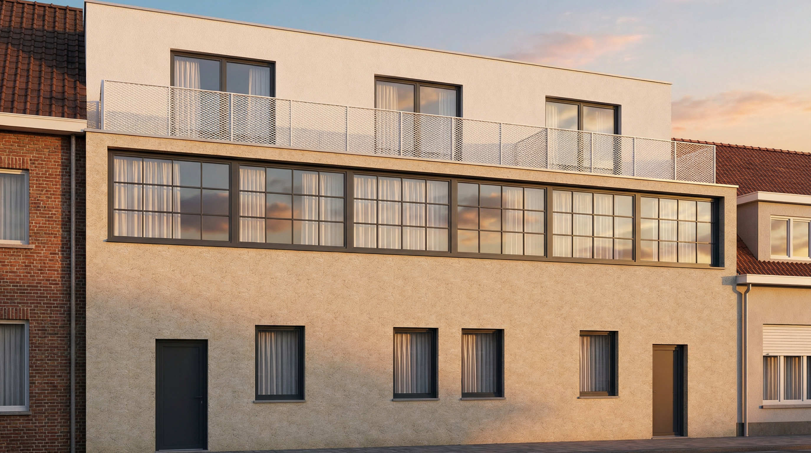 render a realistic image of this building at 93 main st willington nj sow people car trees and a nice ambiance
