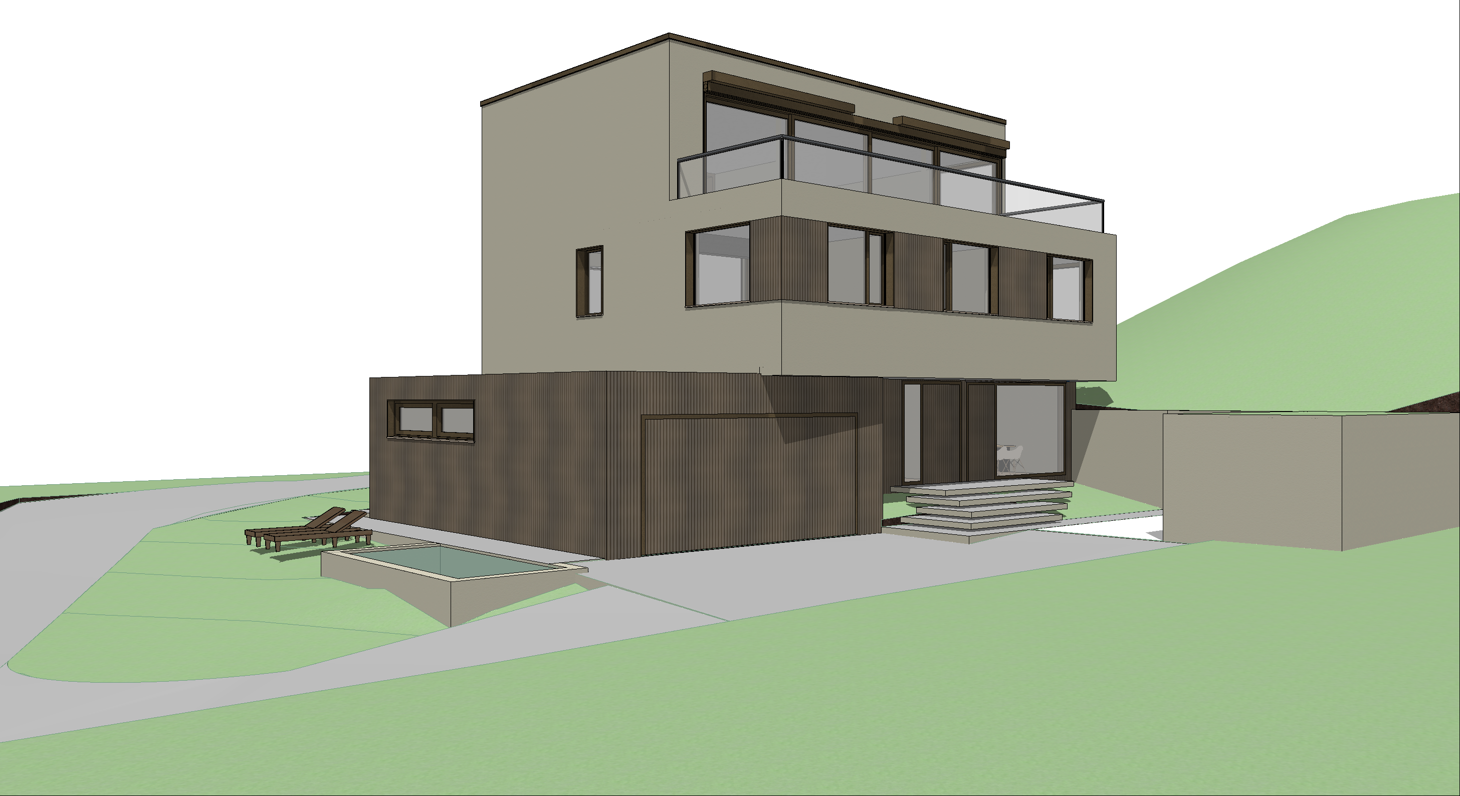 cloudy day but stil a lot of lights in the hills of switzerland green gras and trees in the back