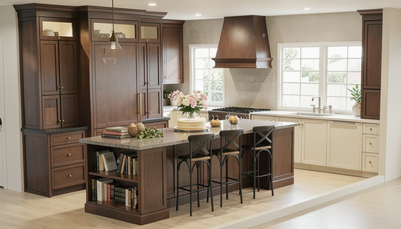 white oak interior wardrobe with white painted drawers with rococo moulding and a mid grey short pile carpet