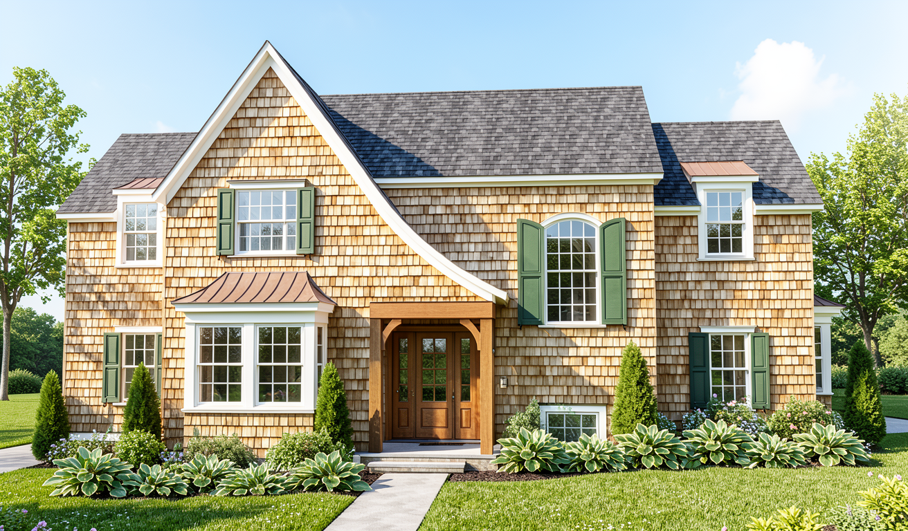 shingle siding realistic full bright landscaping