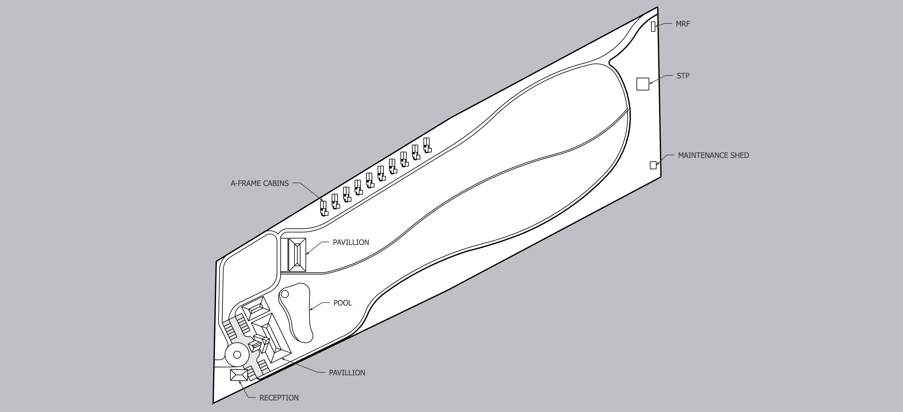 aerial shot site development plan of a resort with a frame houses located on the pink zone