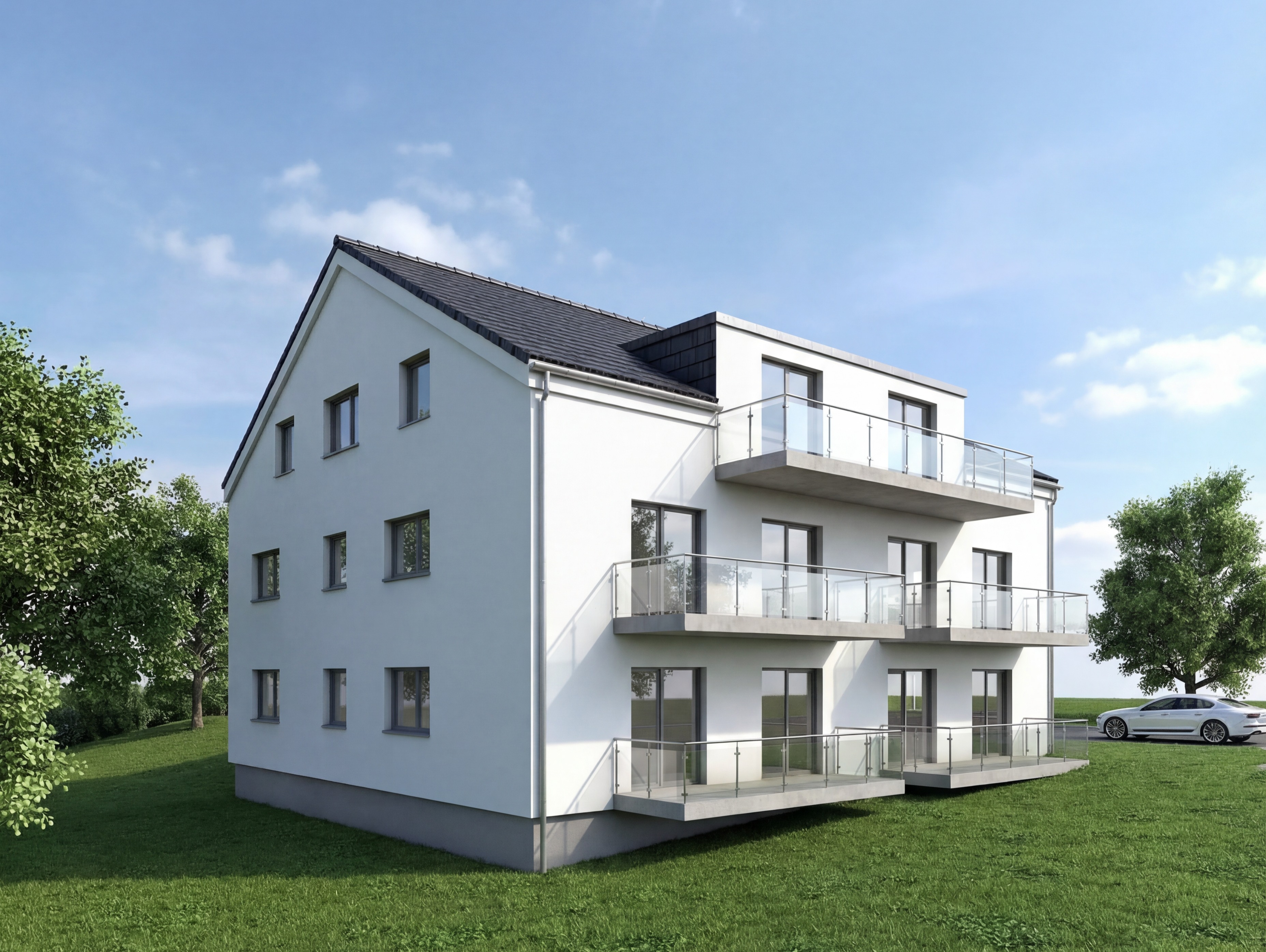 black roof tiles trees balcony plate in anthracite
