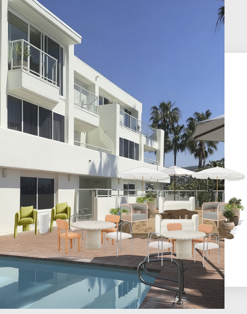 can you make this look more 3 d and real with furniture mock ups i added to the space keep everything as is just change to scale and 3 d