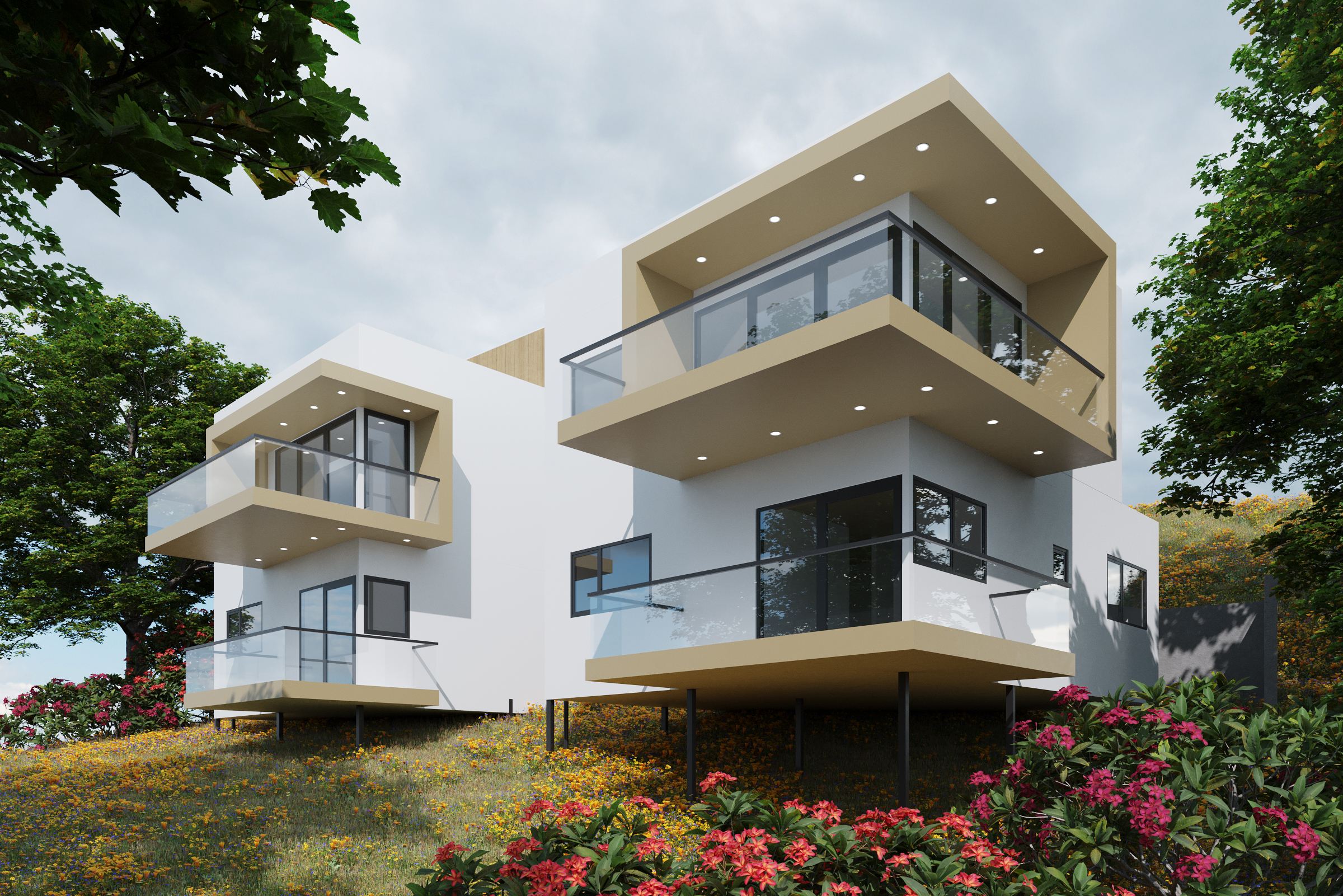 contemporary exterior shot timber ceiling white wall no trees architecture