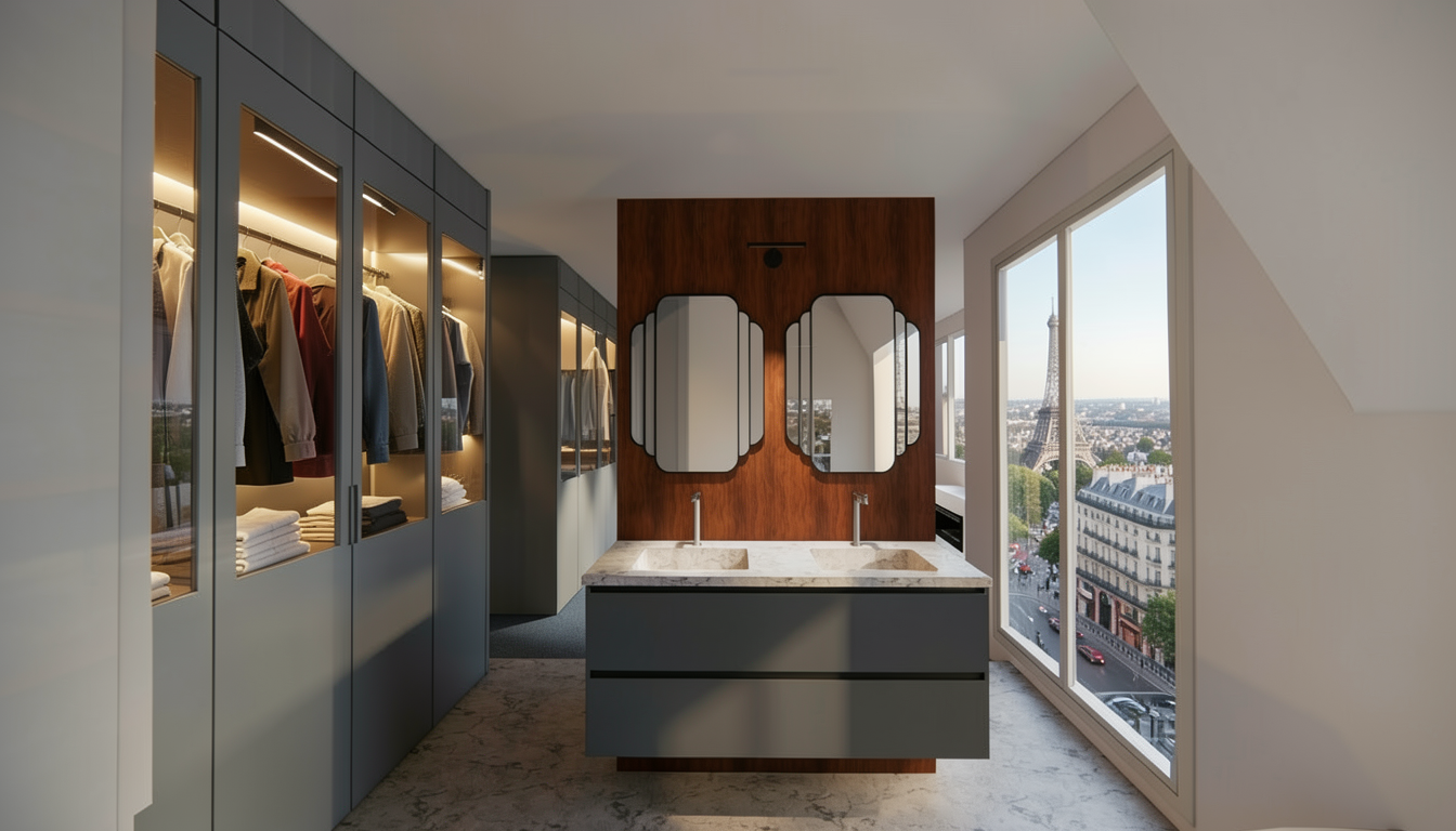 dimm the ceiing led lights for abou 30 and change overall lighting colors to k3000 the rest leave as it is add trees outside in darker green color and add a woman blurred out in her forties behind the kitchen island about to pick up a baby boy in his 2 years running towards her close the curtains everywhere but make them translucent so you can see the outside trees