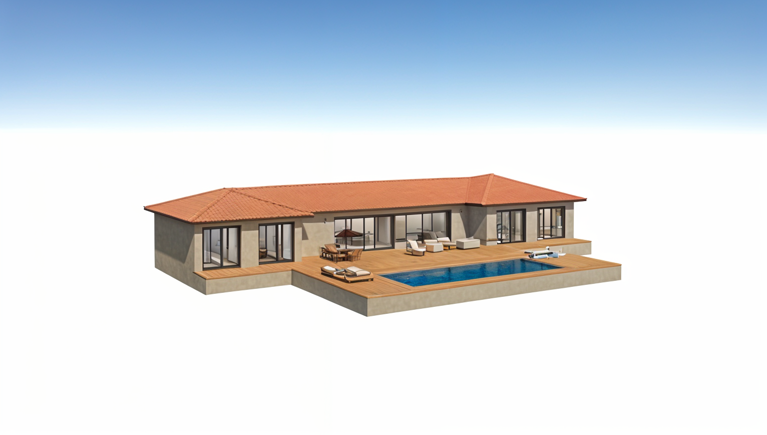 modern spanish style house smooth limestone accent wall off white stucco walls terracota clay roof tiles black window frames