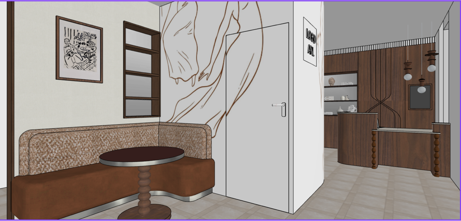 the dining room is as bright as midday above the bench seat there is a bookcase filled with books