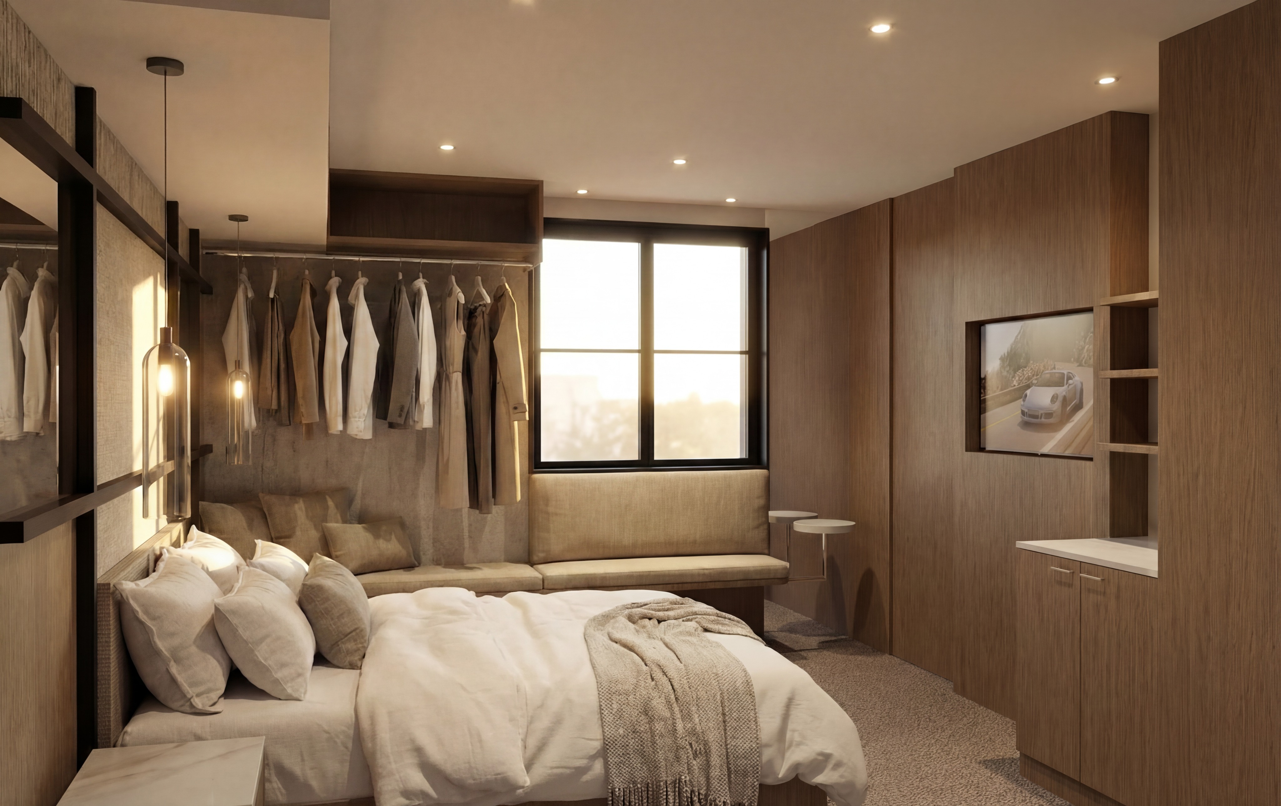 keep all existing textures and finishes remove only pillows on bench seat from under hanging clothes