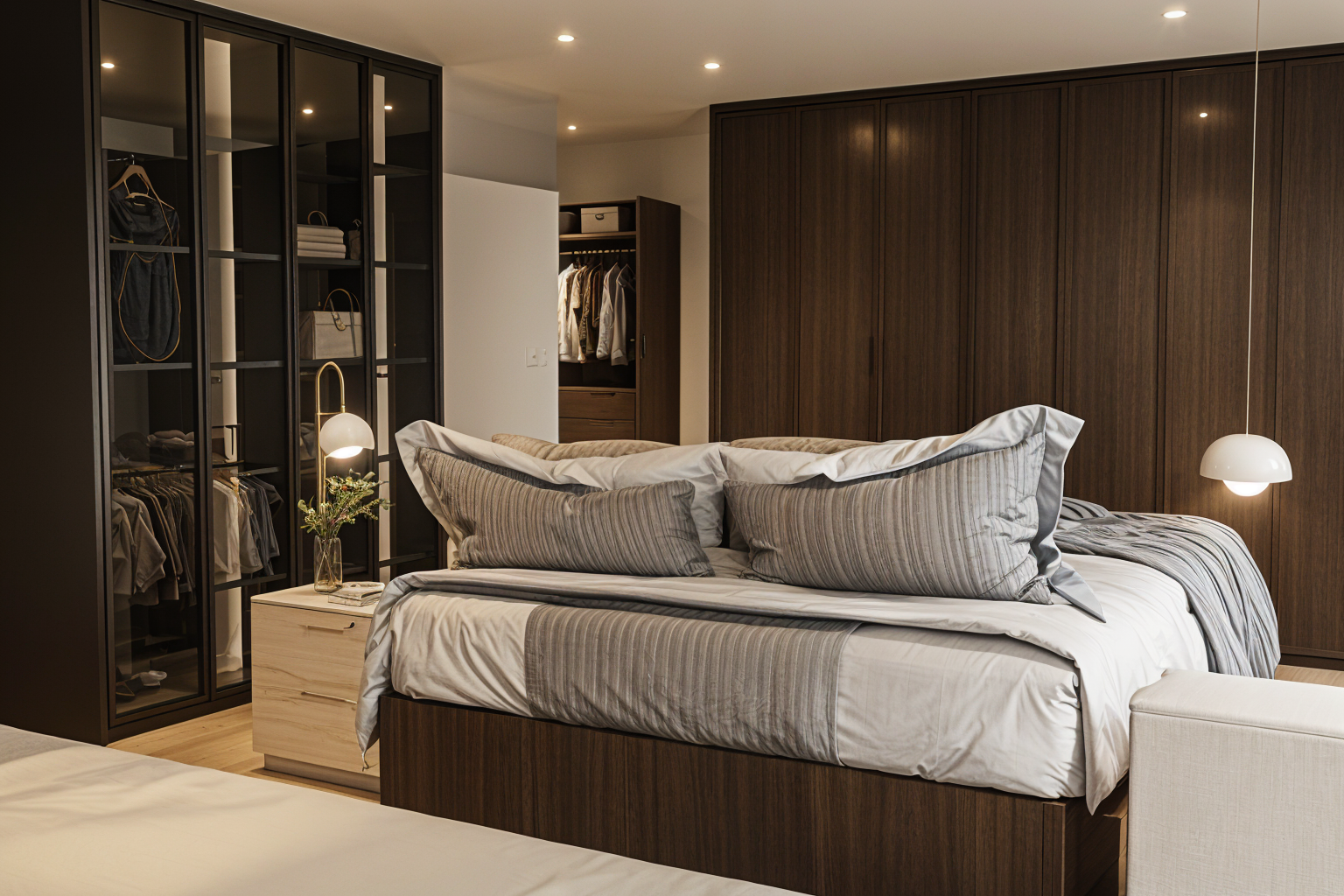 without handle altar cabinet with chinese burning incense and guan yin ma in cabinet in white laminate finish no plant with 2 altar standing lamp beside guan yin ma