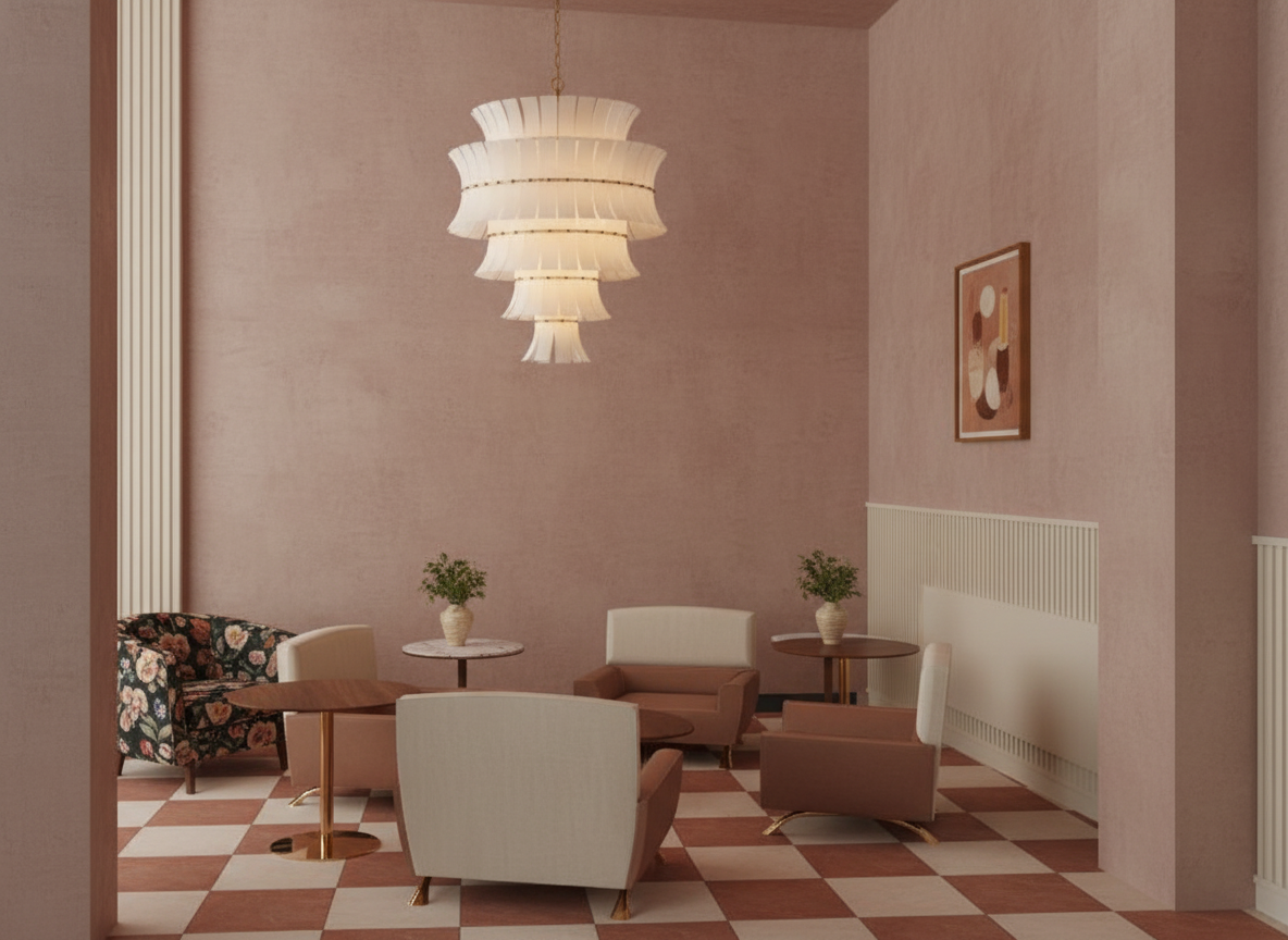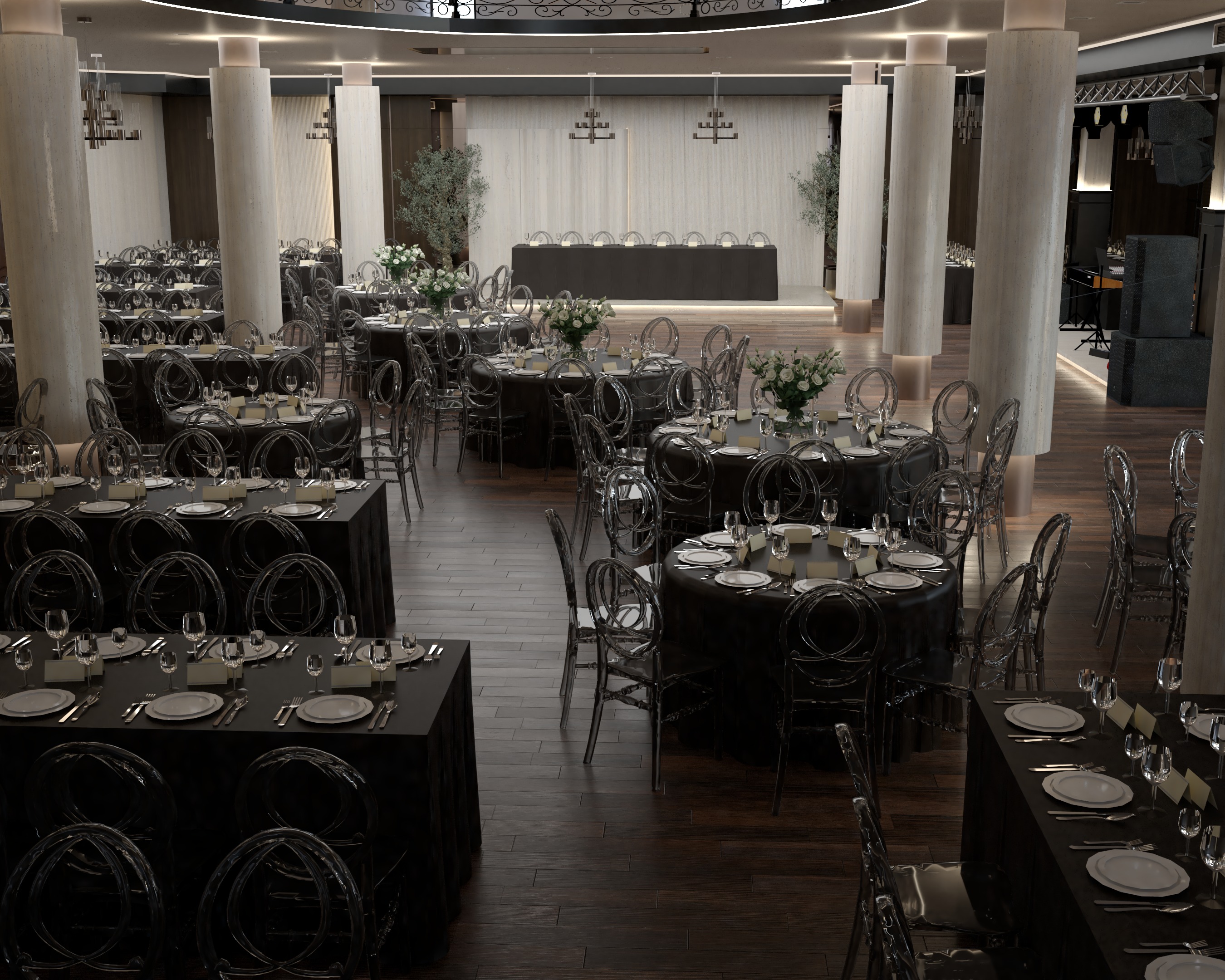 ultra photorealistic corona renderer style interior visualization architectural photography preserve original architecture preserve exact geometry preserve layout preserve furniture preserve materials realism enhancement only no redesign physical based rendering accurate global illumination ray tracing soft contact shadows ambient occlusion realistic light bounce color bleeding ultra realistic materials with correct pbr values realistic roughness subtle imperfections micro surface details fine texture depth natural material variation professional interior photography full frame camera 24mm lens correct exposure realistic dynamic range soft highlight rolloff natural daylight simulation realistic window light soft indirect lighting cinematic but natural balance corona renderer v ray unreal engine 5 quality 8k resolution ultra sharp extremely detailed photorealistic professional archviz architectural digest magazine quality no design change no new objects no new furniture no layout change no geometry change enhancement only preserve everything reduce the intensity of natural daylight entering the space decrease exterior brightness and window light exposure to create a softer more controlled interior lighting atmosphere prioritize warm ambient and artificial lighting from chandeliers and interior fixtures maintain balanced exposure with subtle shadows and a more intimate evening mood suitable for a luxury wedding restaurant do not change the architecture window positions layout or design elements adjust lighting only there is no window in the room on the front of the picture