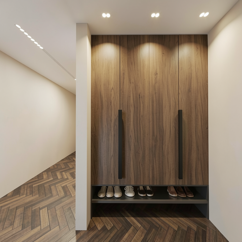 the floor should be lighter wood texture and more realistic also the wood texture on the wardrobe should be darker