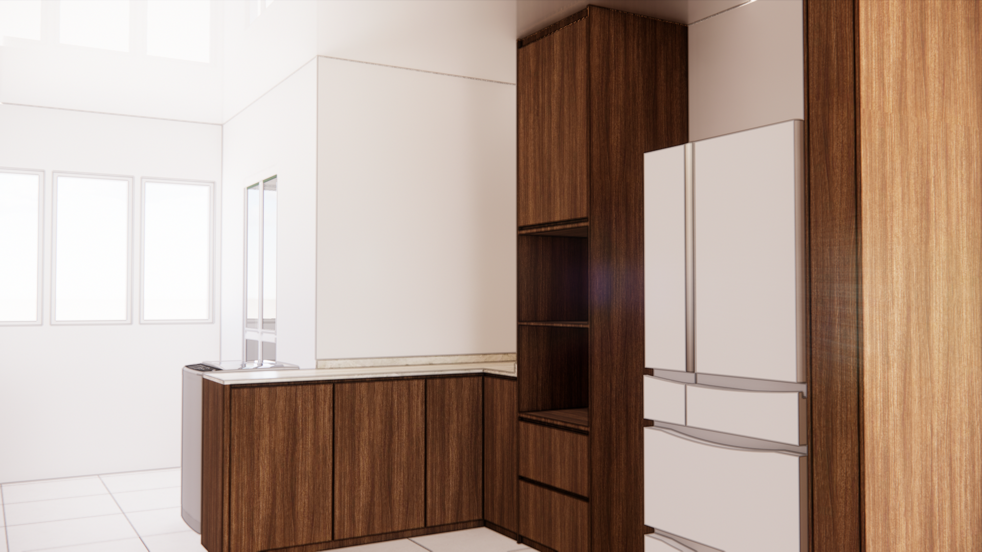 maintain existing style and material for new render ambience lighting realistic render natural lighting dark wood colour