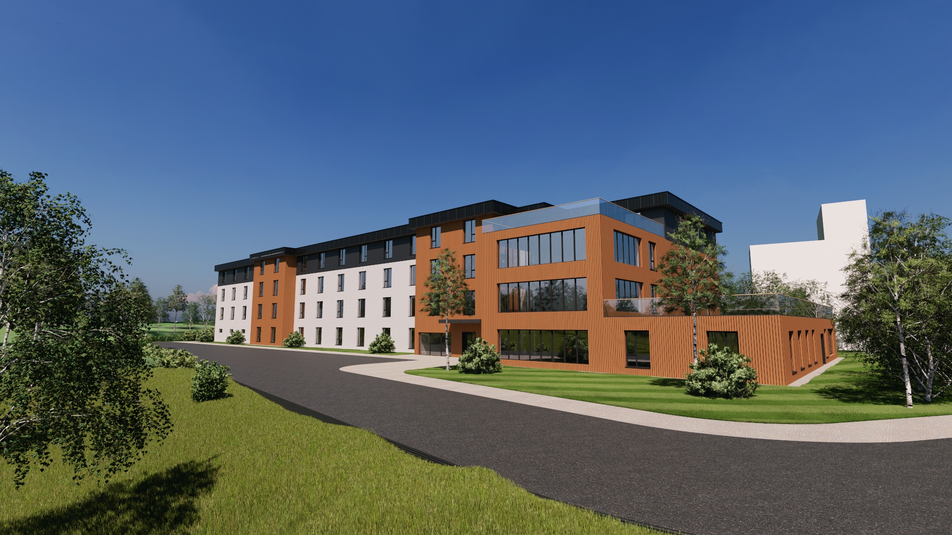 add parking lines to asphalt where possible add interiors add curtains add outer jalousie to windows light up interiors