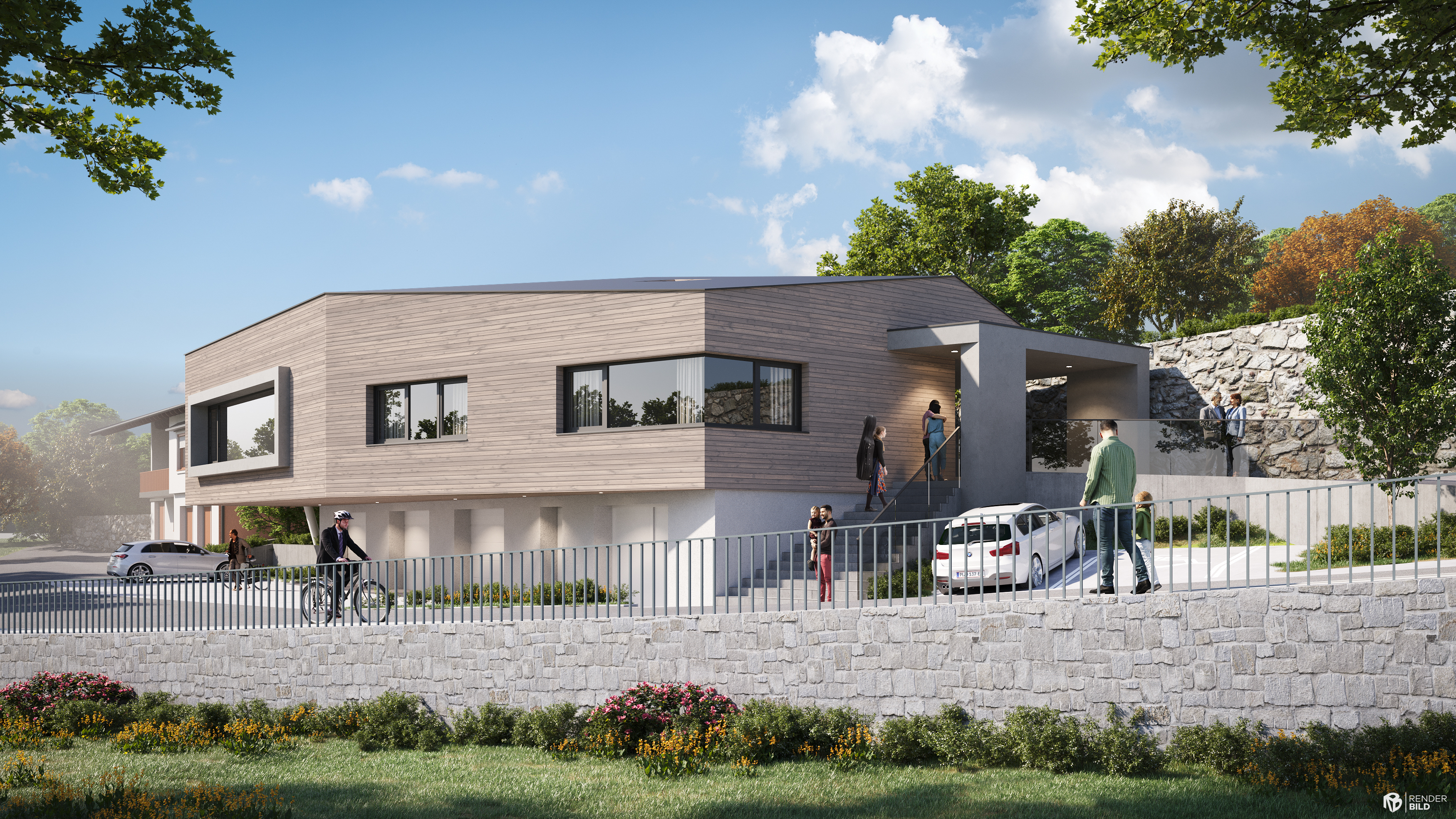 exterior shot exchance wood facade to a little bit darker wood facade architecture