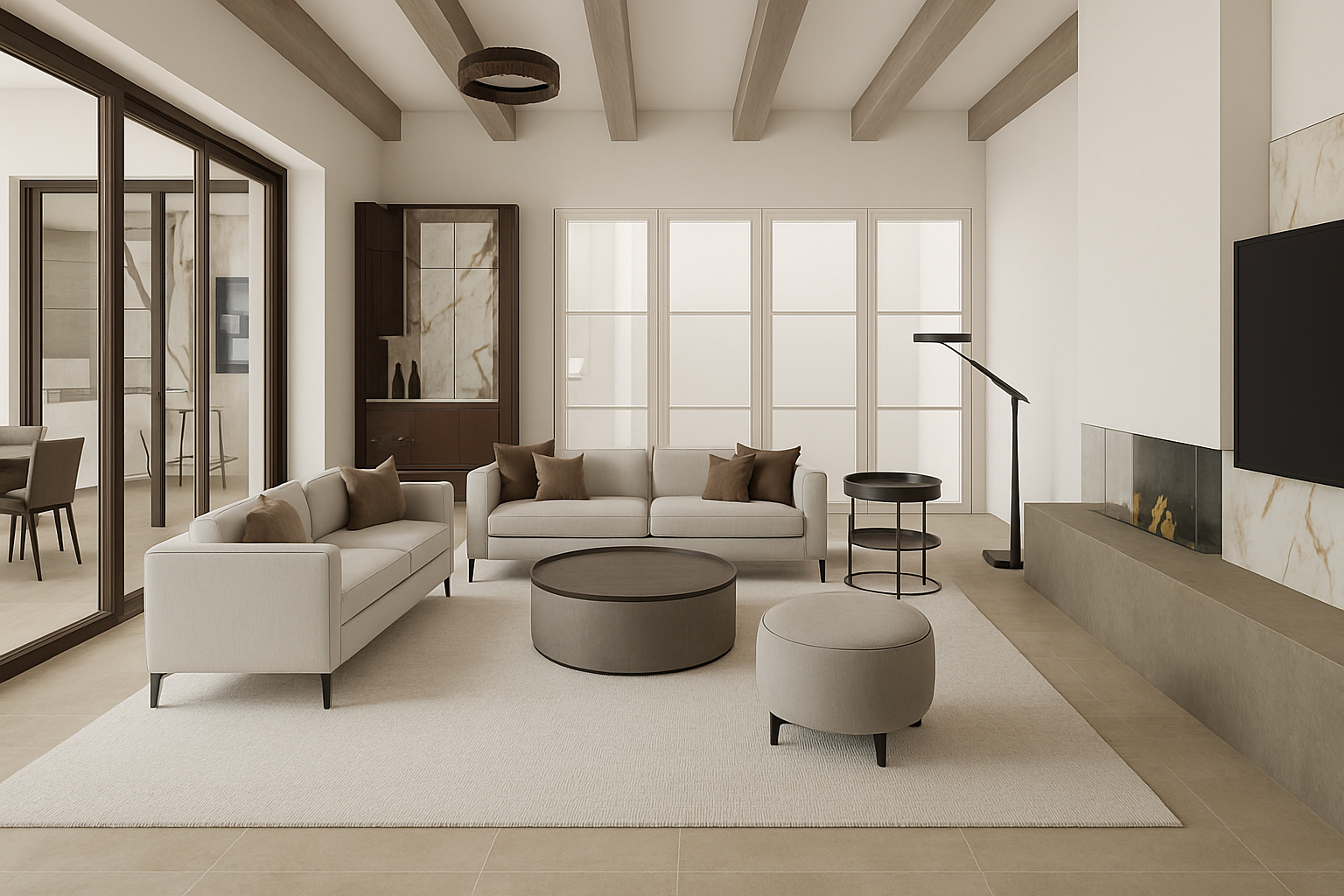 change the flooring to large white limestone tiles