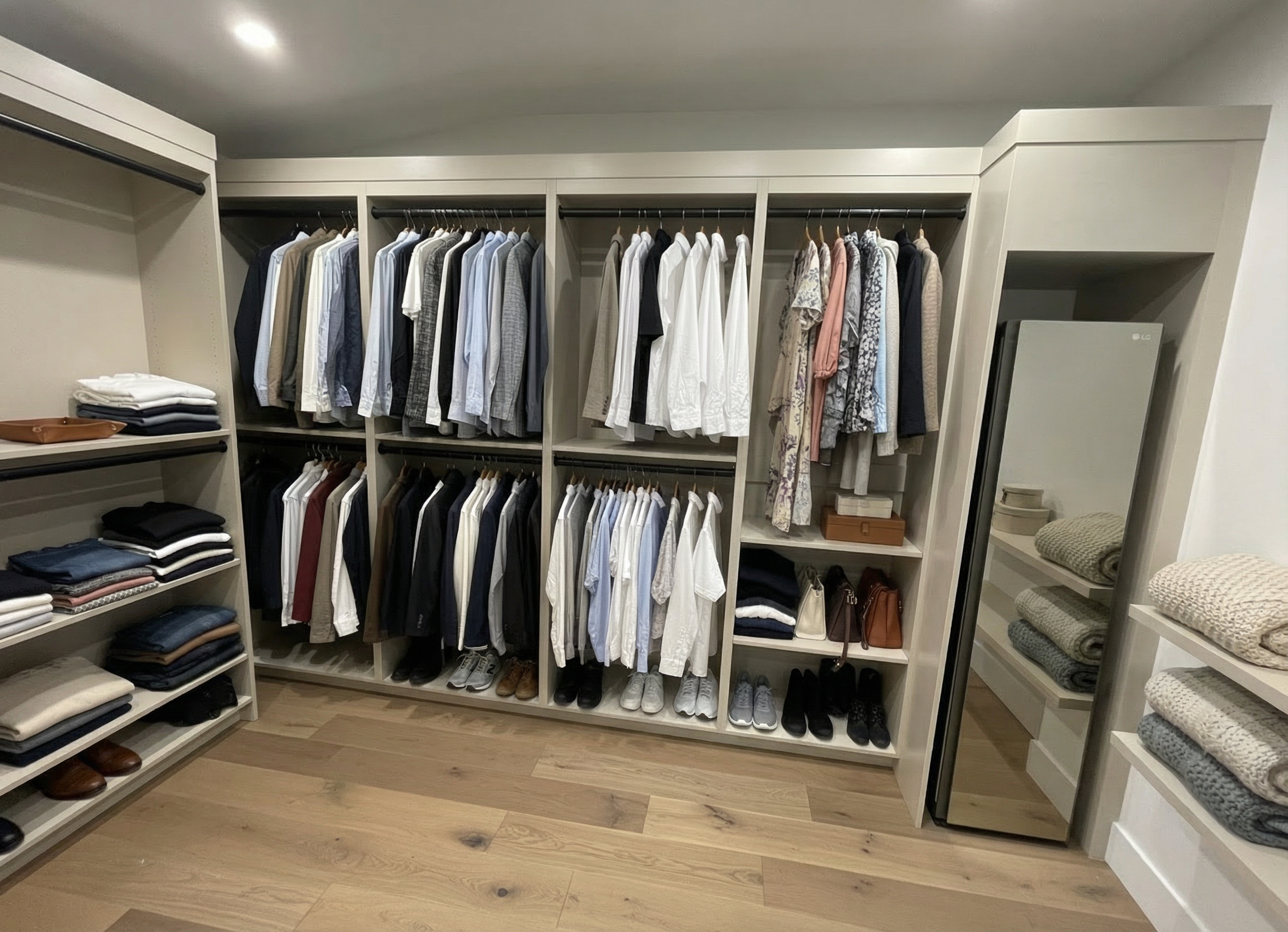make the counters against the wall a white quartz with subtle grey veining and keep the island stone black as is lighten the walnut tone on the two tall wood cabinets and make the light more natural sunlight and lighten the floors to a golden oak and keep the backsplash a stacked modern white tile