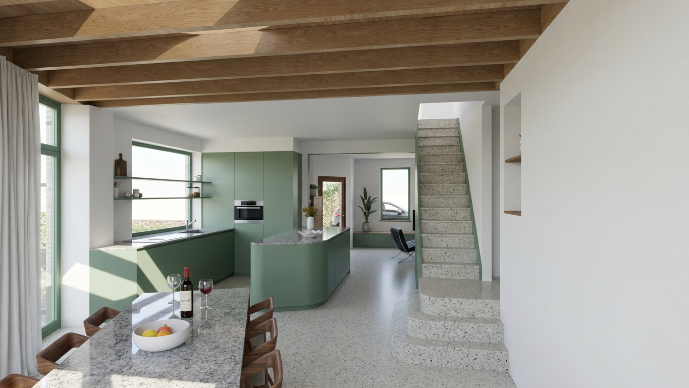 transform this sketchup screenshot into a professional photorealistic architectural visualization do not change the design architecture proportions layout perspective or composition in any way maintain the exact geometry materials and colors as shown in the original image do not reinterpret or redesign anything create a realistic lighting setup with a bright naturally illuminated atmosphere include soft natural daylight subtle sunlight direction and ambient bounce light combined with realistic artificial lighting from existing lamps or light sources in the scene all light sources should emit believable light and cast accurate shadows ensure physically accurate materials true to life textures correct reflections and realistic surface properties the final result must be sharp high resolution highly detailed and photorealistic preserve the original camera angle and framing exactly no stylistic reinterpretation only realistic enhancement the ceiling should be black there should be a black frame with edge lighting on the right wall the surface is filled with orac w109 valley