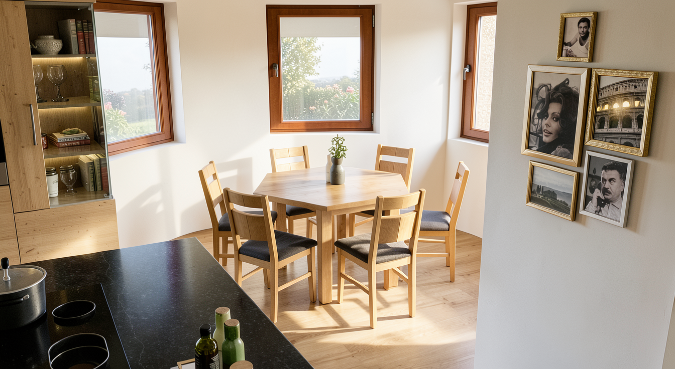 add indirect lights on the side panels and ceiling and add one flower vase decorations on top of the credenza and some