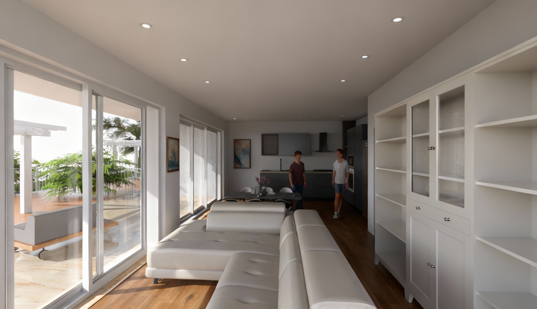 add landscape design and greenery in the foreground low vegetations more students with uniforms maintain background as now architecture