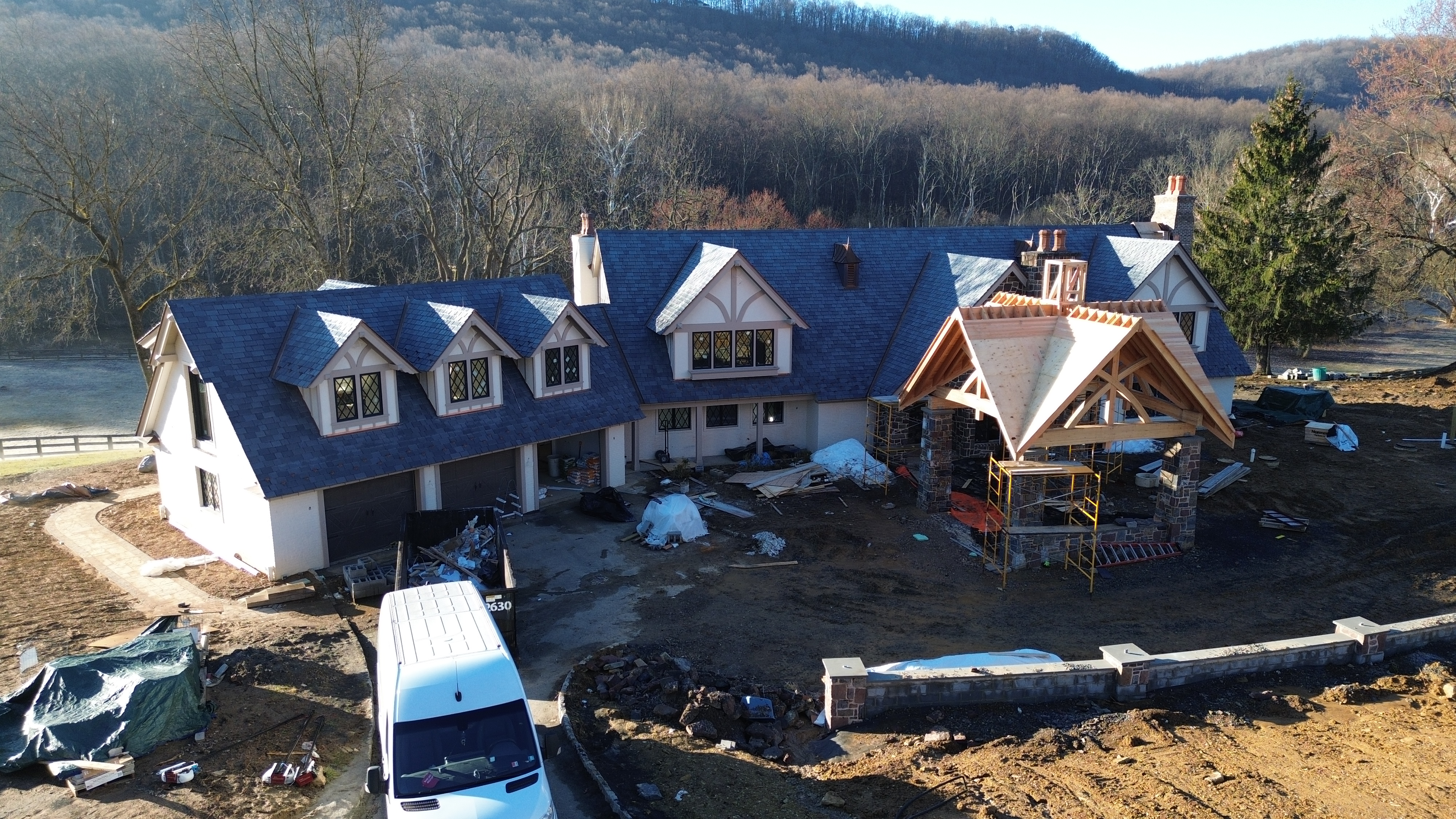 remove all construction debris and vehicles put a slate roof on the portico in the front