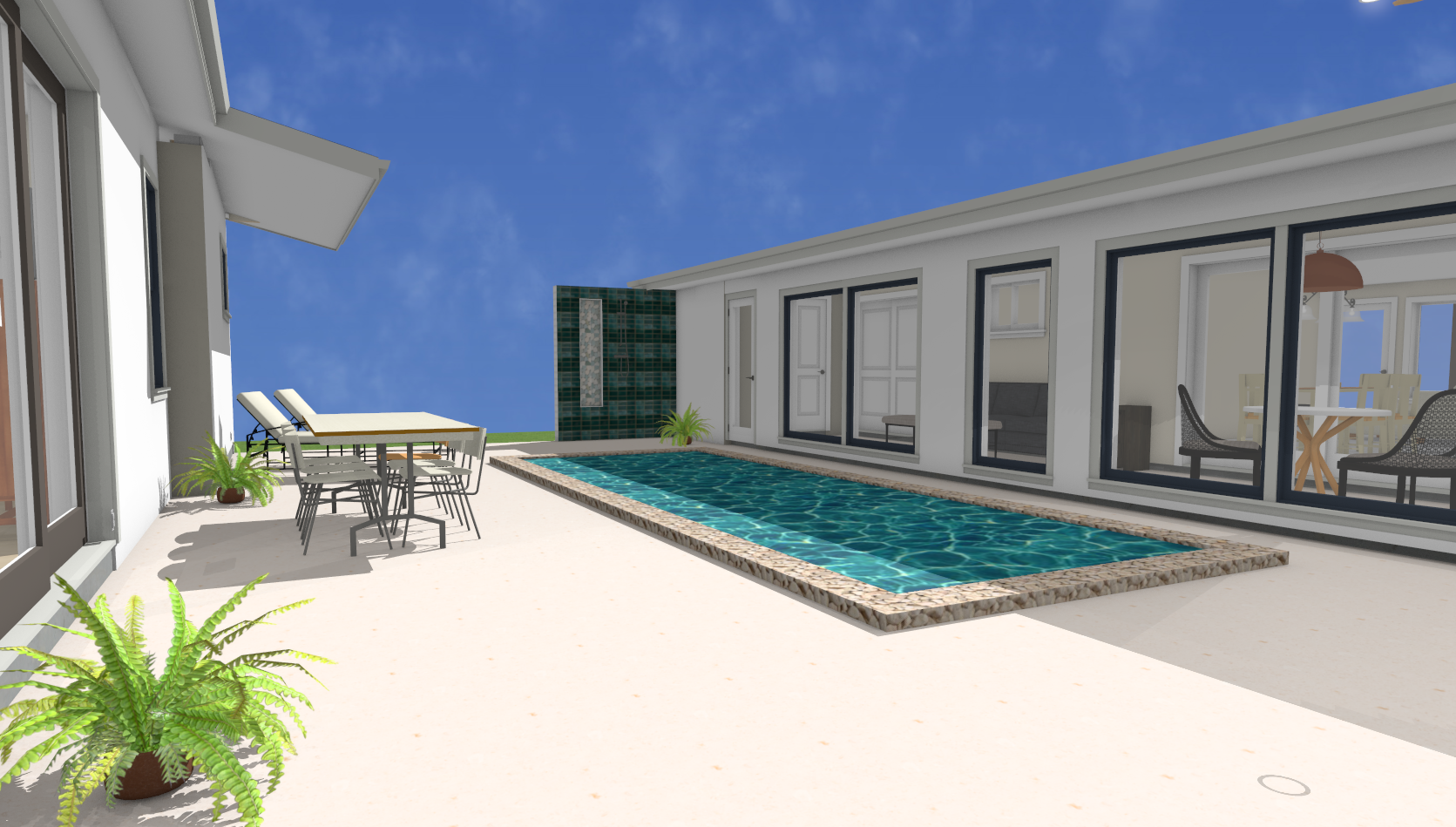 create a photo realistic image of this pool deck keeping the colors the best you can
