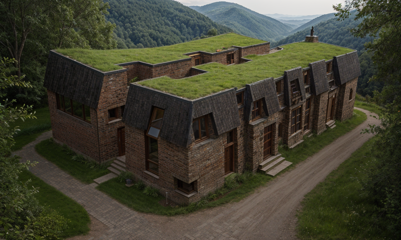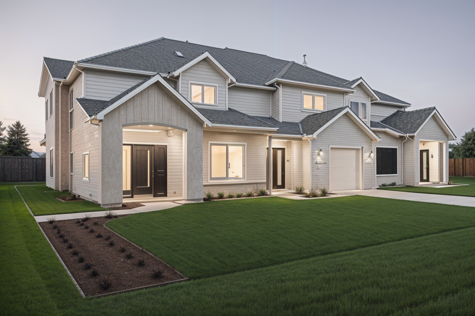 victorian exterior shot make realistic with subtle stylistic suburban setting dusk lighting the spotted ground is grass the white ground is concrete architecture