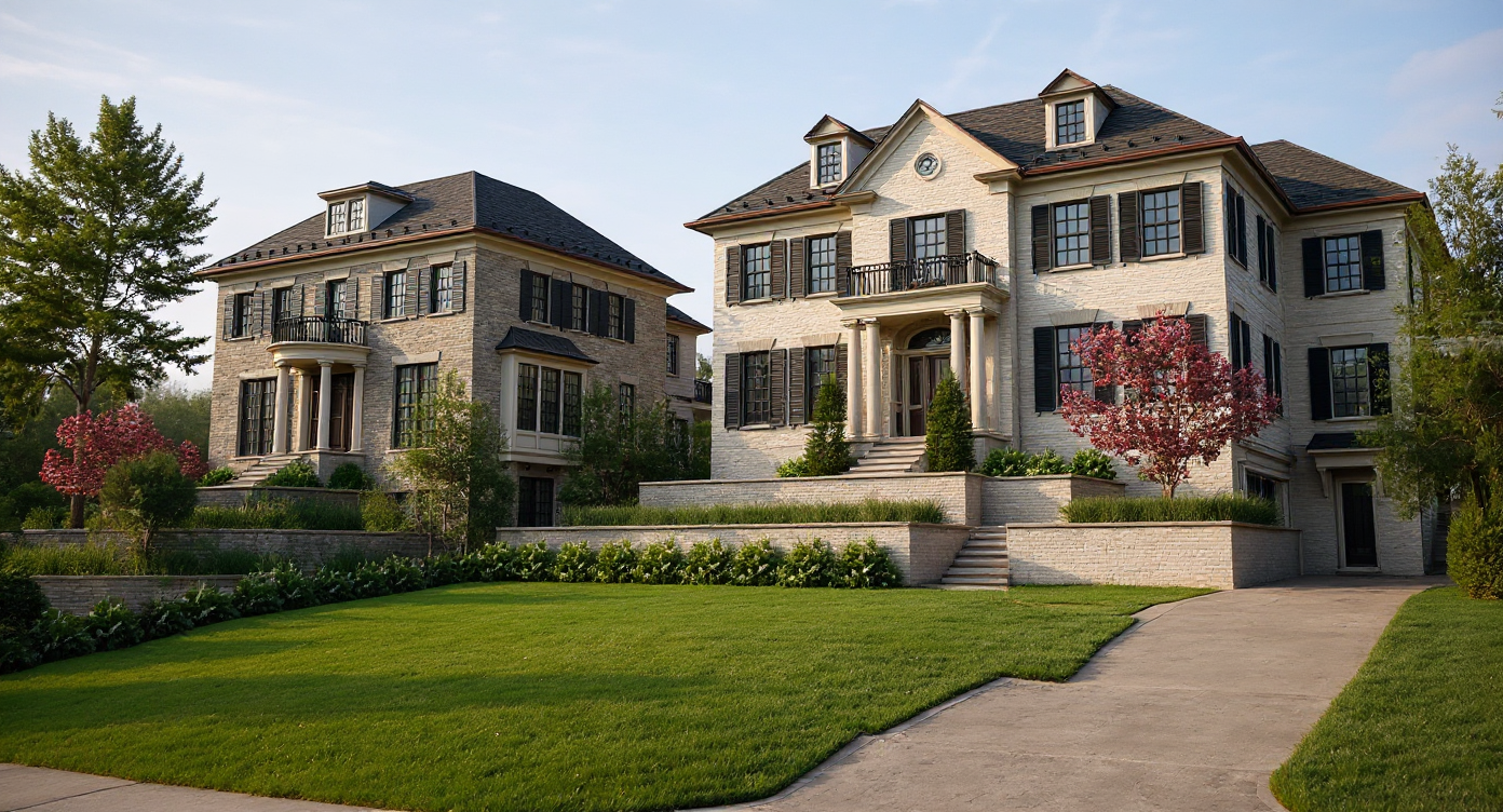 create a high end photorealistic 3d exterior architectural rendering add more landscaping and trees
