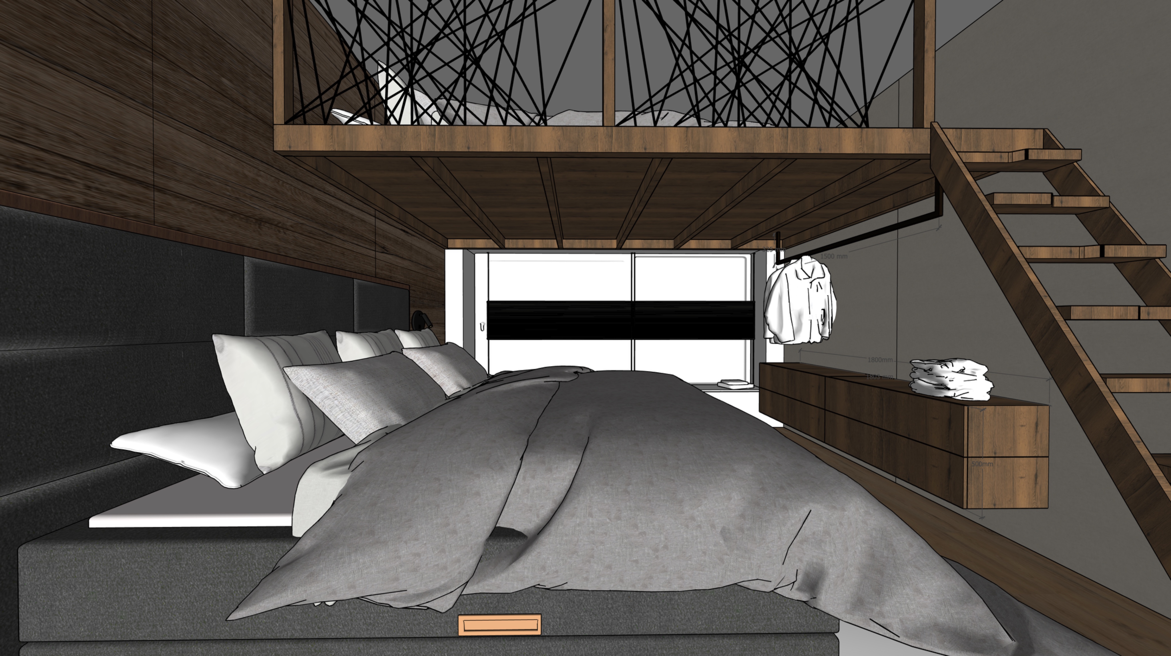 render a photorealistic version of the provided interior while keeping the exact original design critical no interpretation this is a fixed interior design you are not allowed to redesign restyle or reinterpret anything only improve realism absolute rules do not change layout geometry proportions or camera angle do not add any objects furniture decorations or lighting do not remove anything do not replace or redesign any object light fixtures very important all lighting fixtures are existing real objects bedside wall lamps must remain identical shape size material position these lamps must not be redesigned replaced or restyled only turn them on with soft warm light 3000k do not change their appearance in any way wall behind bed keep the wooden cladding exactly as it is egger h1181 dub halifax tab kov tone no led lighting no backlighting no hidden lighting do not modify or restyle this wall wall above dresser critical the wall above the dresser is a clean plain wall exact color soft grey beige paint no texture no wallpaper no texture no panels no painting no tv no decoration this wall must remain completely empty and smooth lighting natural daylight from the window soft diffused light through curtains balanced exposure realistic interior lighting led rules only keep led lighting that already exists in the original design do not add any new led strips anywhere no led behind the bed no led on wall panels materials locked wood egger h1181 dub halifax tab kov black egger u899 soft black matte preserve all tones finishes and textures exactly realism enhance wood grain fabric detail and subtle reflections improve contrast depth and soft shadows keep a clean minimal high end photorealistic result final constraint if any element is unclear do not change it keep everything exactly as in the input image