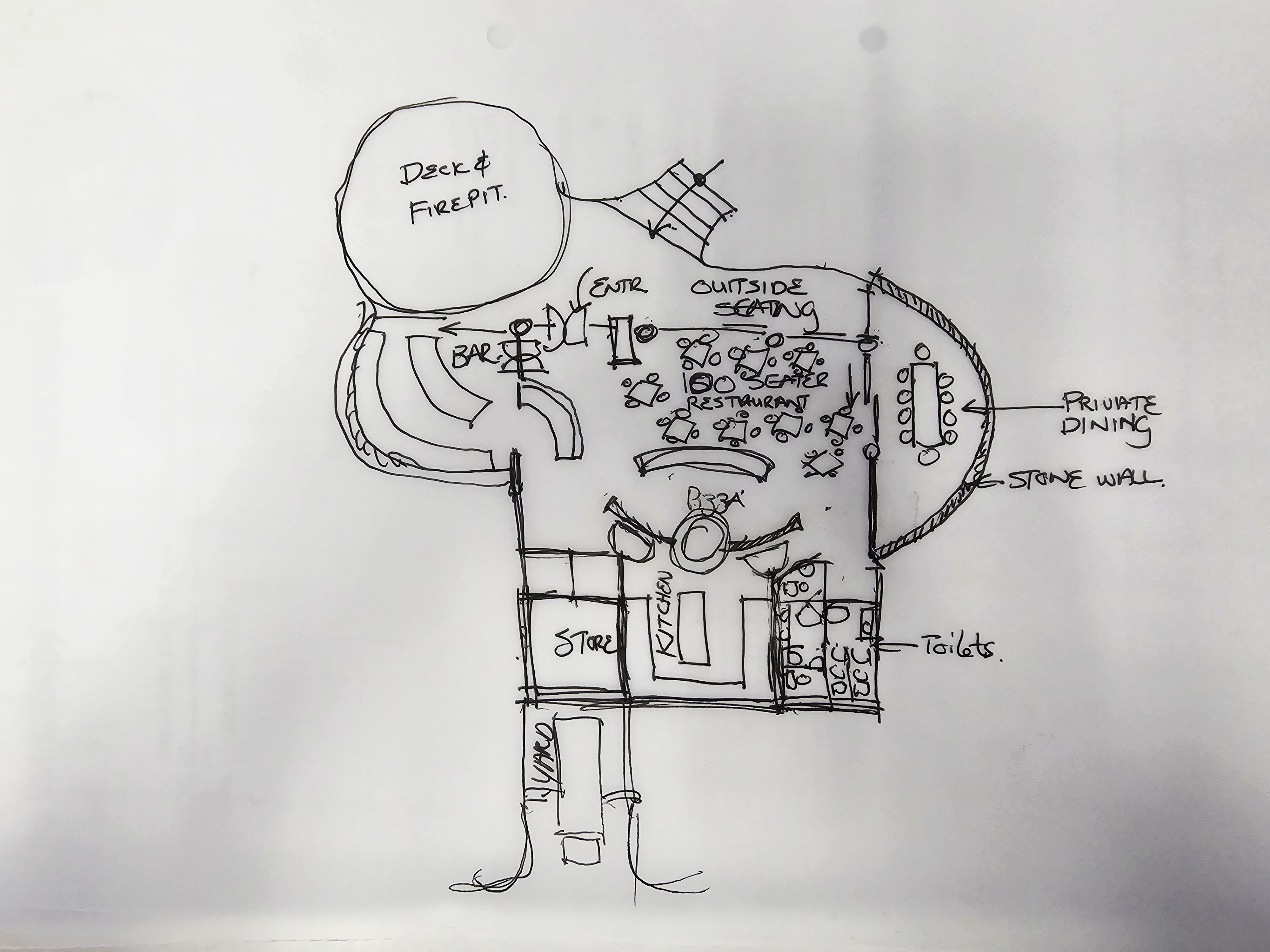 interior from the top generate a restuarant layout with kitchen and bar