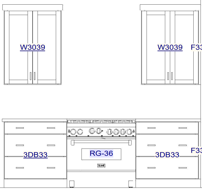 please render this range wall layout with the same cream color cabinetry and subway tile backsplash as last rendering stainless steel range and add a stainless steel range hood above the range be sure to remove the text notes