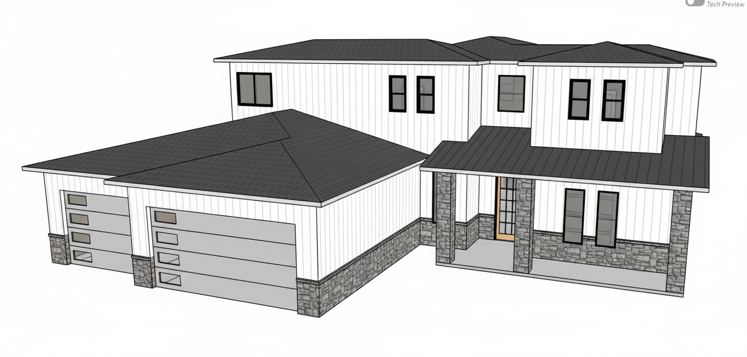 columns to be stone board and batt finish white color bottom 3 feet to be stone around perimeter in the add a driveway in front of garage