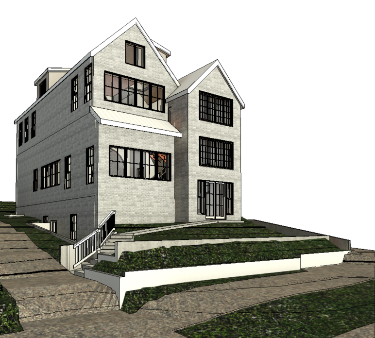 tudor style with painted white brick