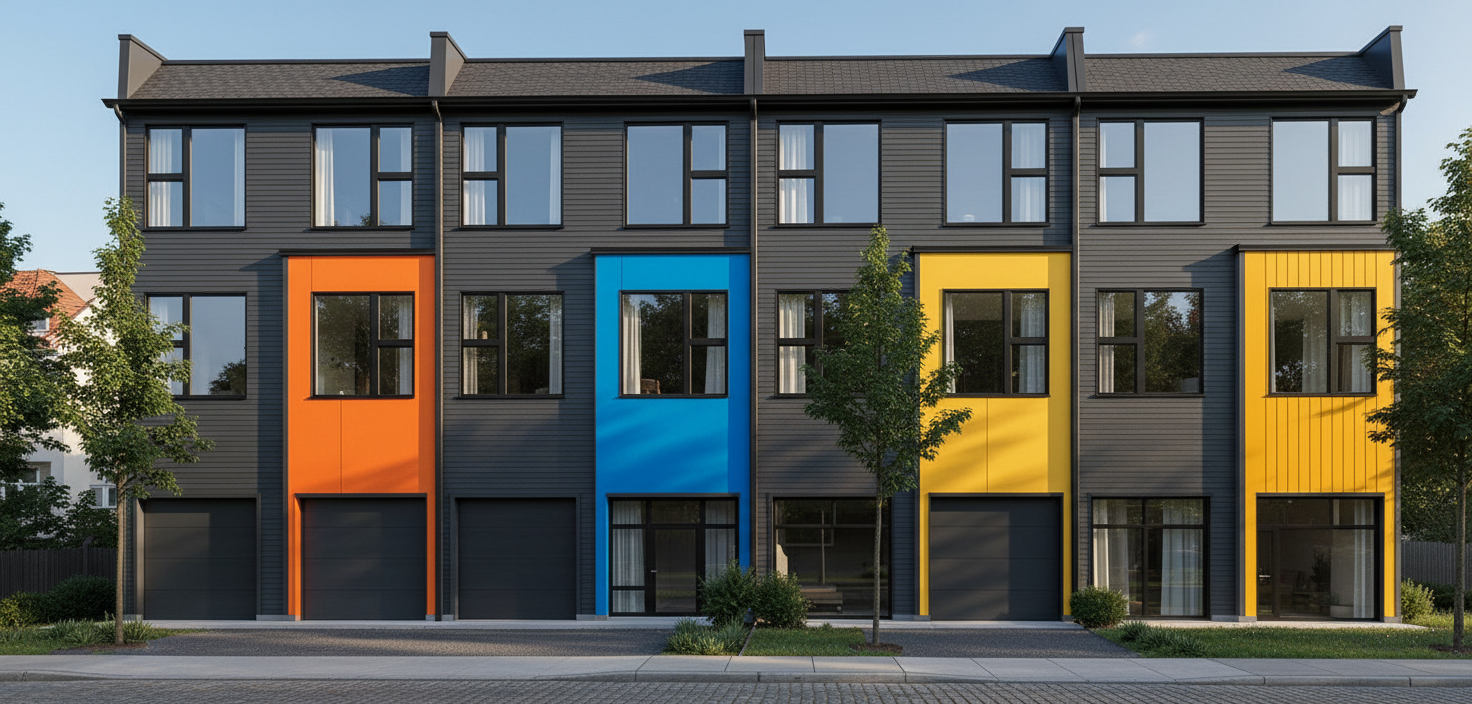 make the wall above the canopy a grey turquoise make all other walls and the ceilings an off white make the ceiling soffits a darker grey turquoise make the railings a dark grey keep everything else the same