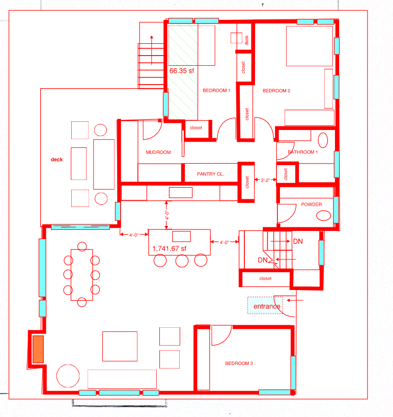 convert this floor plan into a modern isometric 3d view of a full house show the space from an elevated angle with furniture walls and details visible create an isometric model plan to showcase floors european white oak bathrooms tile use the same furniture as shows on the plan do not change the orientation of the floorplan