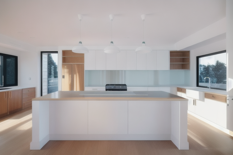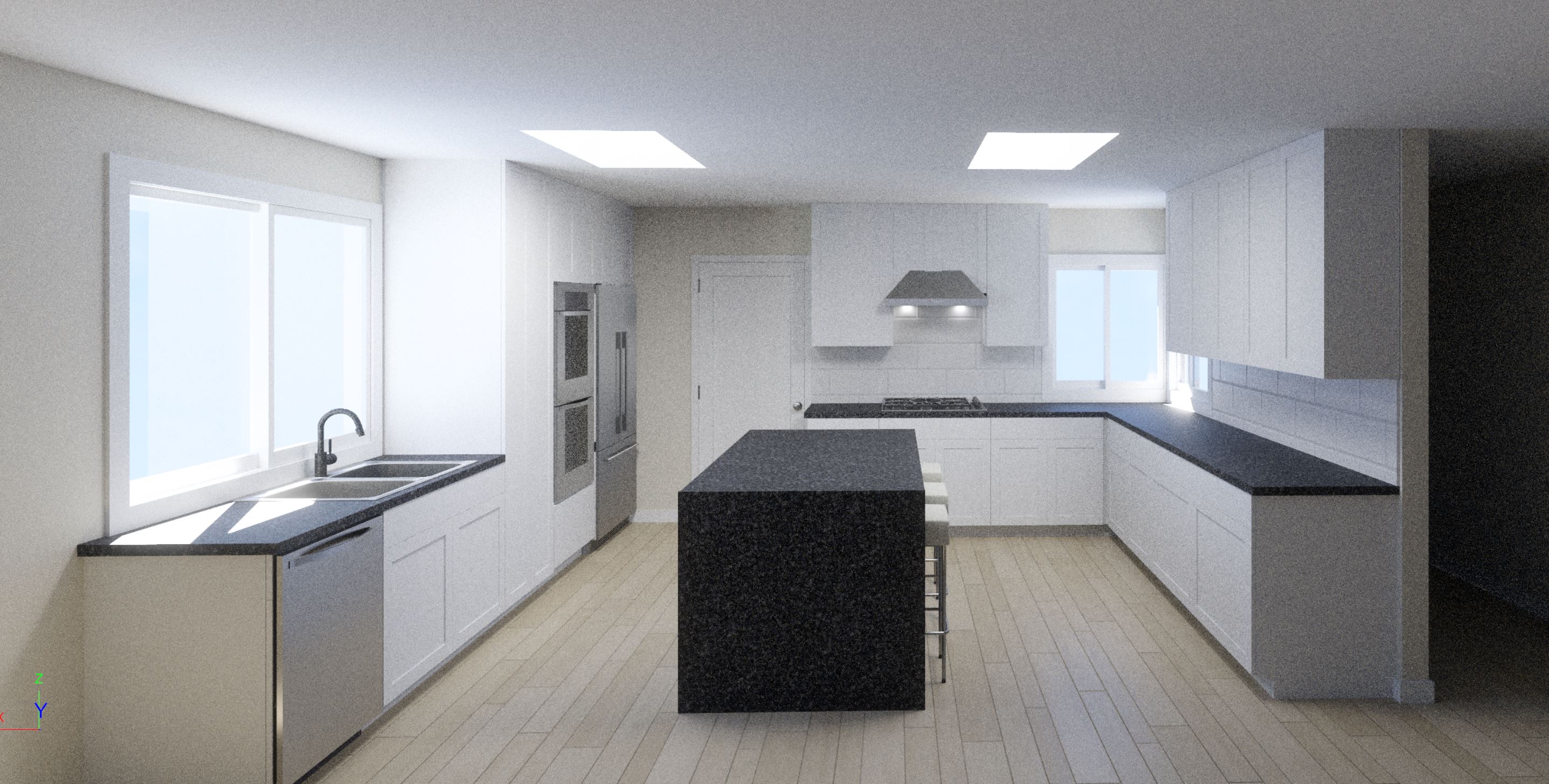 modern kitchen dark oak lower cabinets and pantry and white wall cabinets quartz blacksplash and countertops