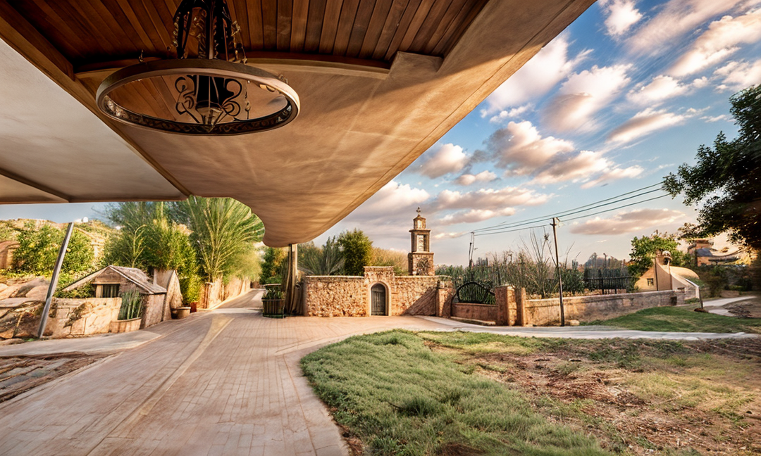 this is a house with horizontal siding the wall on the right side with one window is stone veneer and has vertical siding on the second floor with shingles on top the horizontal and vertical siding are the same color the wall above the garage also has shingles the roof is asphalt shingles add a concrete driveway from the garage and a path from the driveway to the porch add lighting fixtures on both sides of the garage and on the porch add plants and trees around the house and add a fence like if its in a neighborhood