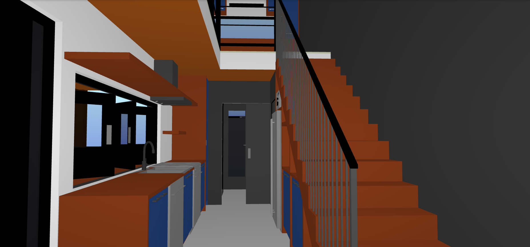 this is a small tiny home with a loft above the countertops stairs and ceiling should match in cedar plank through the pocket door in the rear is a luxurious bathroom