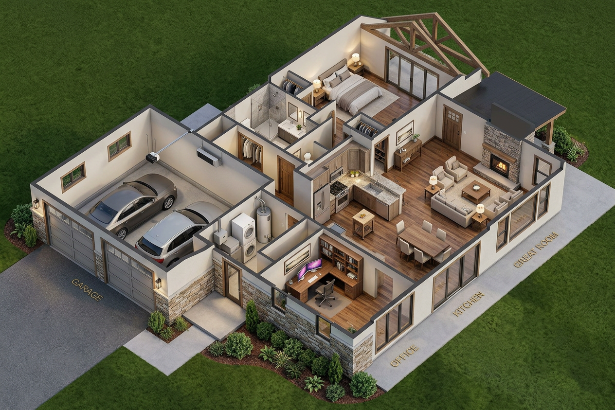 farmhouse in a rural setting with a large yard maintain house colors clean crisp green siding improve the landscaping less landscaping on the right driveway come from the left side to behind the home