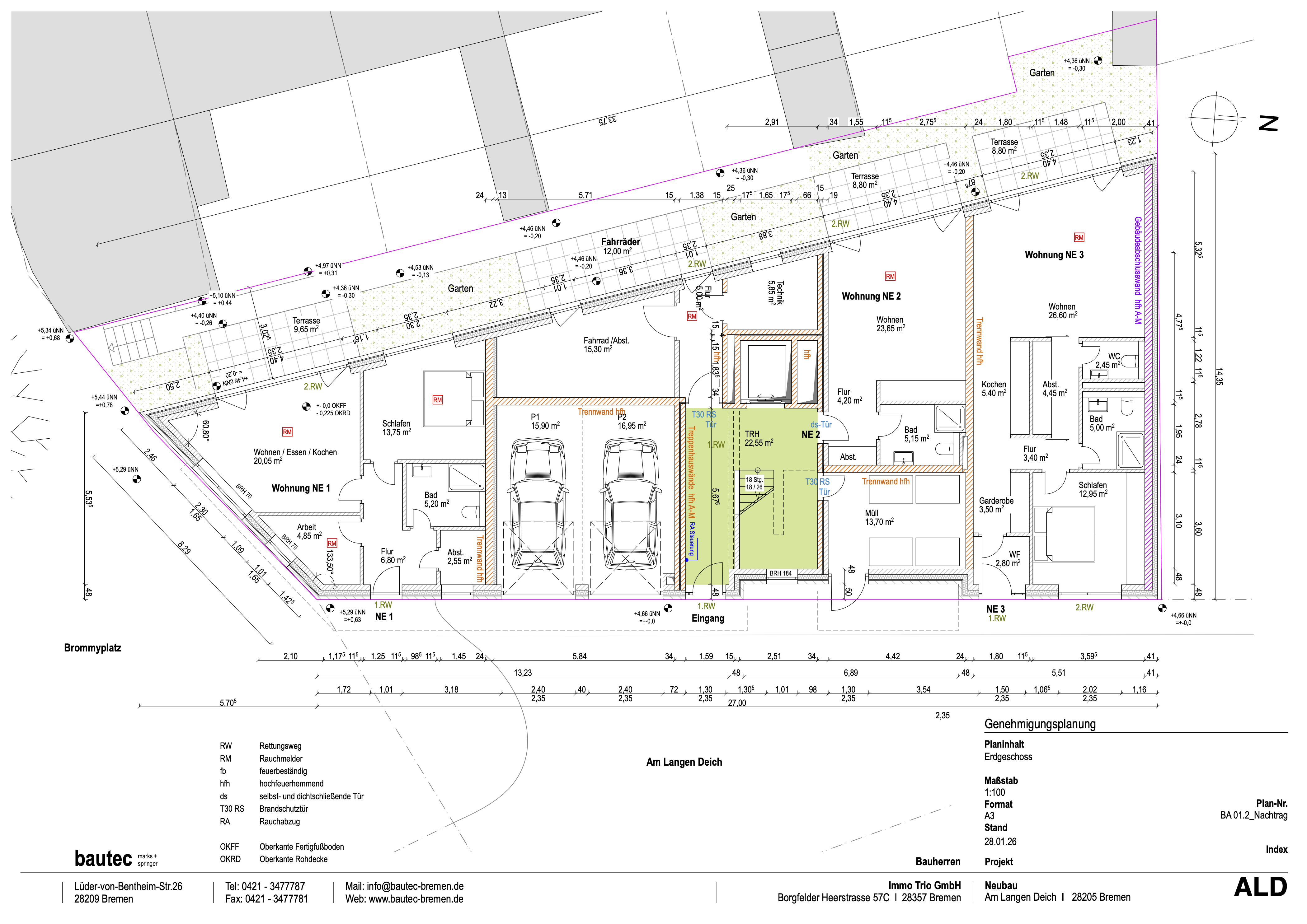 create a high end photorealistic top down floor plan rendering based strictly on the uploaded technical blueprint of a residential ground floor use the plan as an exact geometric reference and preserve all wall positions wall thicknesses openings room sizes and proportions with 100 percent accuracy do not modify reinterpret or redesign the layout in any way the spatial structure must remain identical to the original plan transform the technical drawing into a premium real estate presentation style suitable for a high end property expos the overall design should follow a modern minimalist scandinavian inspired aesthetic with a warm elegant and inviting atmosphere use soft natural daylight entering through the windows and create subtle realistic shadows to enhance depth apply a consistent and high quality material concept throughout the floor plan use warm toned natural oak parquet with wide planks in all living and sleeping areas design bathrooms and wcs with light beige to soft grey stone tiles modern and refined use large format light grey tiles in hallways staircase areas and all common spaces to create a clean and uniform look furnish all apartments completely with realistic scale accurate furniture appropriate to each room living areas should include a sofa coffee table rug and a subtle tv setup dining areas should feature a modern dining table with a suitable number of chairs depending on room size kitchens should be designed as minimalist built in kitchens either linear or l shaped depending on the layout bedrooms should include a double bed bedside tables and wardrobe solutions bathrooms should be equipped with walk in showers or bathtubs vanities mirrors and soft lighting enhance the scene with carefully curated decoration such as plants textiles curtains and subtle accessories while keeping the overall look minimal clean and uncluttered use a neutral color palette with beige warm grey and soft wood tones design all terraces and outdoor areas with stylish outdoor furniture such as tables chairs or lounge elements and add greenery to create an inviting outdoor living atmosphere keep common areas like staircases and entrance zones clean minimal and only lightly staged remove all technical annotations from the original plan including dimensions measurement lines symbols abbreviations fire safety markings and construction notes keep only the architectural structure such as walls doors windows and spatial layout render the image in a perfectly top down orthographic view with no perspective distortion high resolution sharp geometry and realistic material definition ensure a balanced brightness and contrast with a bright and welcoming overall impression avoid any distortion unrealistic colors incorrect scaling of furniture or unnecessary visual clutter
