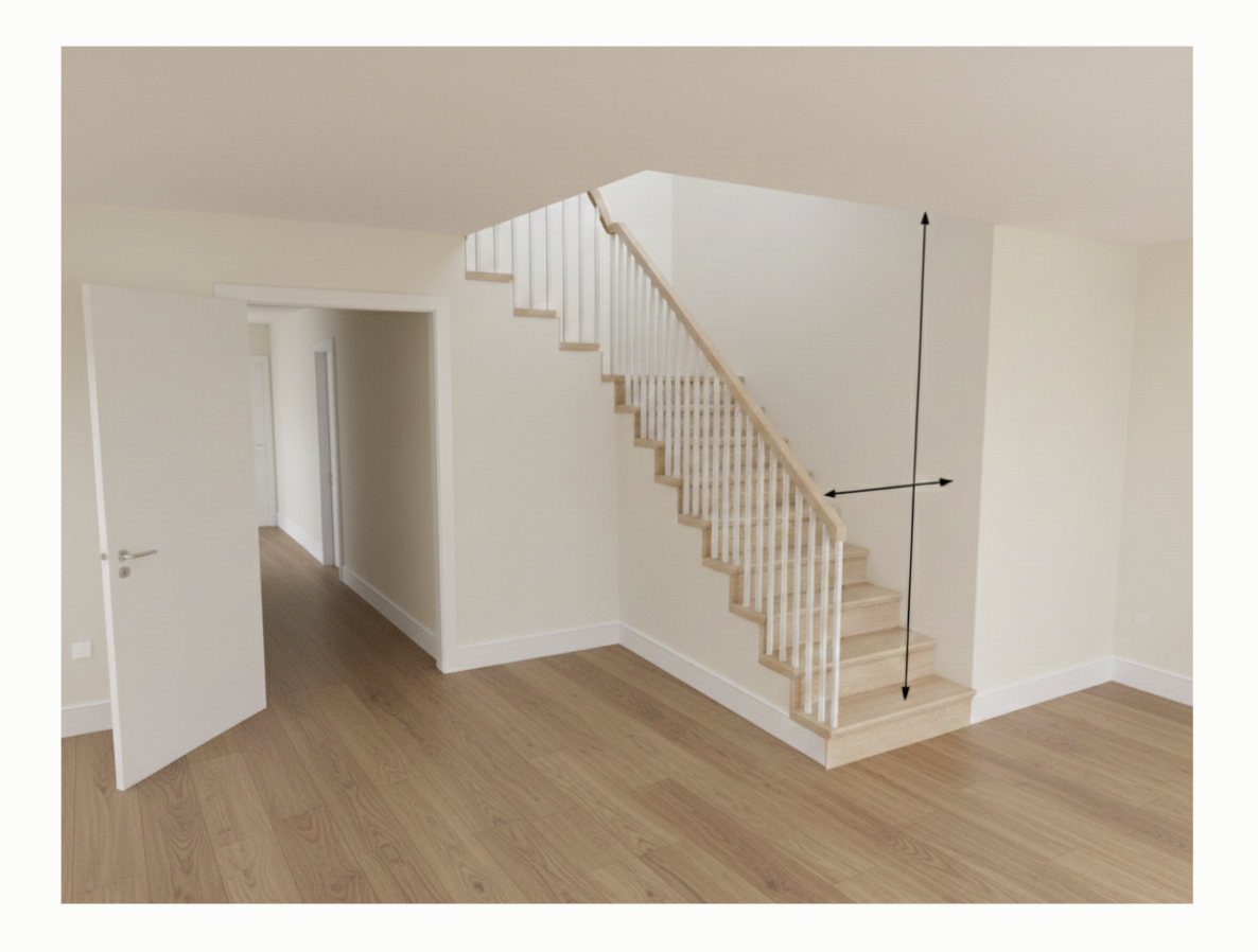 fix the perspective and make the floor white oak remove the shadows and make the staircase modern