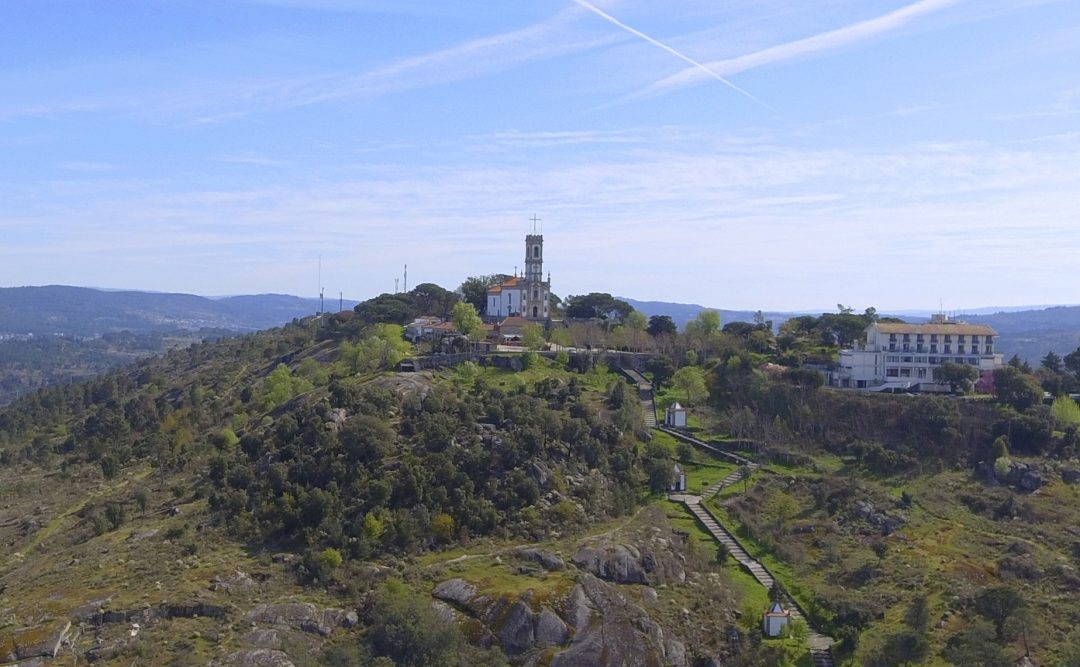 criar uma imagem fotorrealista noturna que mostre a ilumina o embutida no correr do muro de pedra que circunda a ermida da senhora do castelo manter a textura realista da pedra a inclina o natural do terreno e a envolvente paisag stica t pica do local rvores caminho pedonal e ambiente rural de montanha a ilumina o deve ser suave e cont nua com temperatura de cor quente 2700 3000 k criando um ambiente acolhedor e realista nota esta uma imagem de visualiza o arquitet nica podem ocorrer pequenas varia es art sticas de luz cor ou enquadramento para real ar o efeito fotorrealista